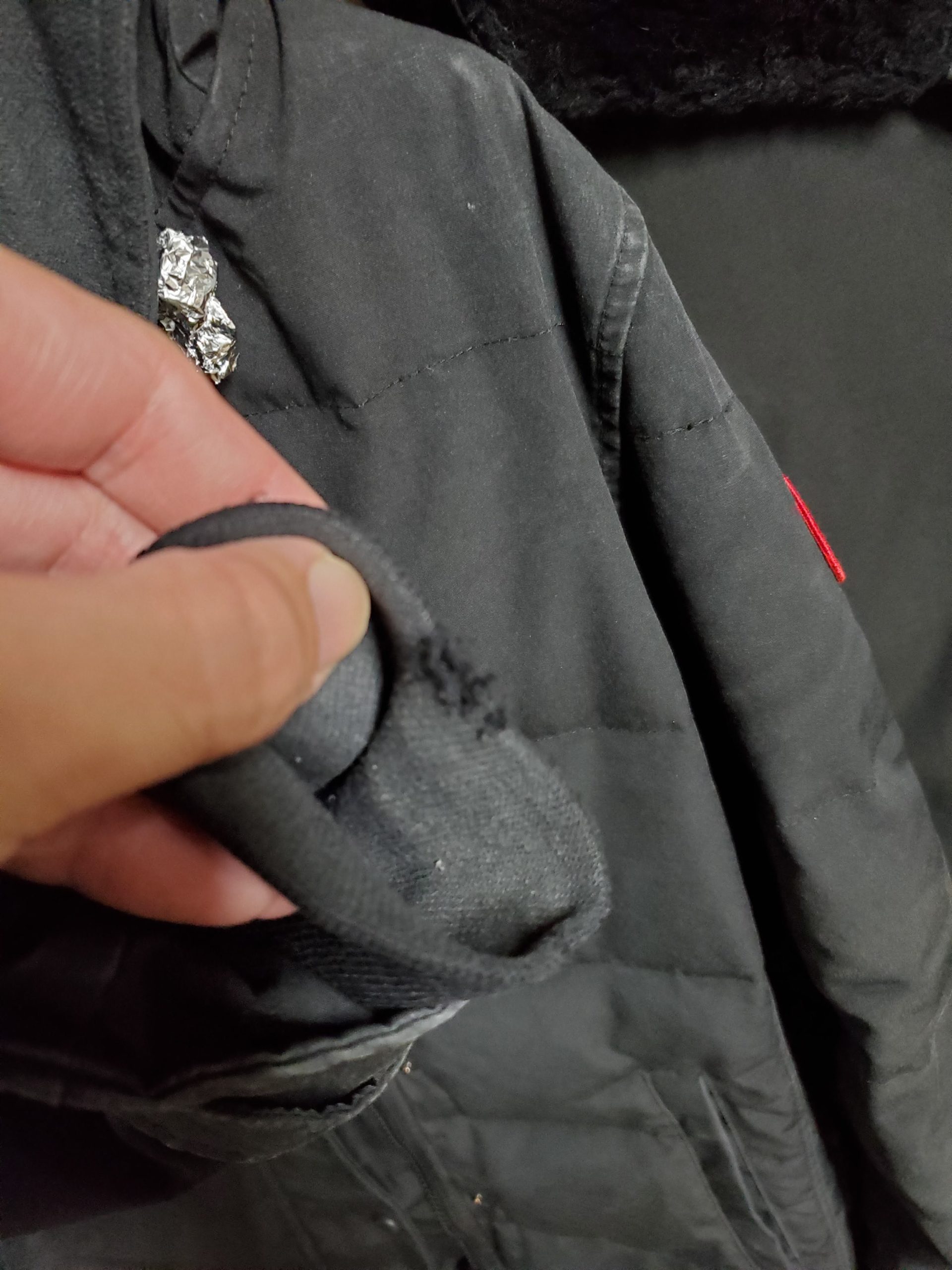 カナダグースのリブ部分は表面生地より出ている事があり、それが原因で引っかけてキズになるケースが多いです。