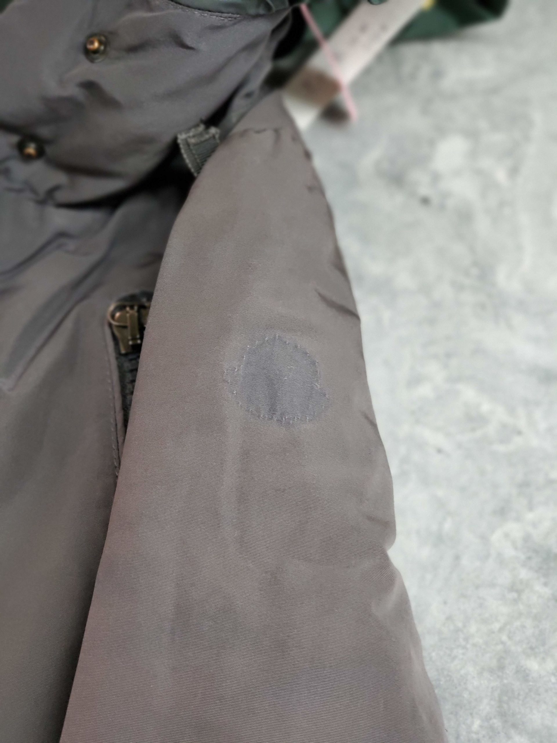 モンクレール、カナダグース、水沢ダウン、タトラス、デュベチカ等すべてに言えることですが、全体つけ込み染色する場合は、1度ブランドマークを外してから染めます。