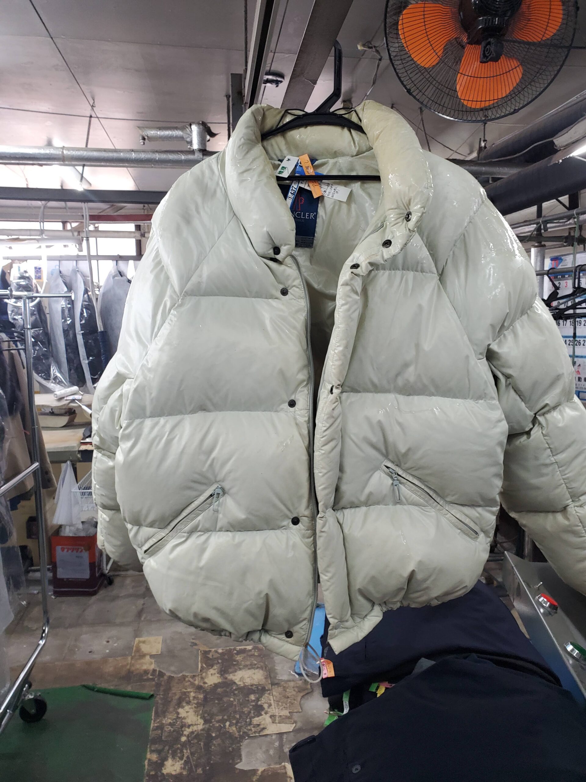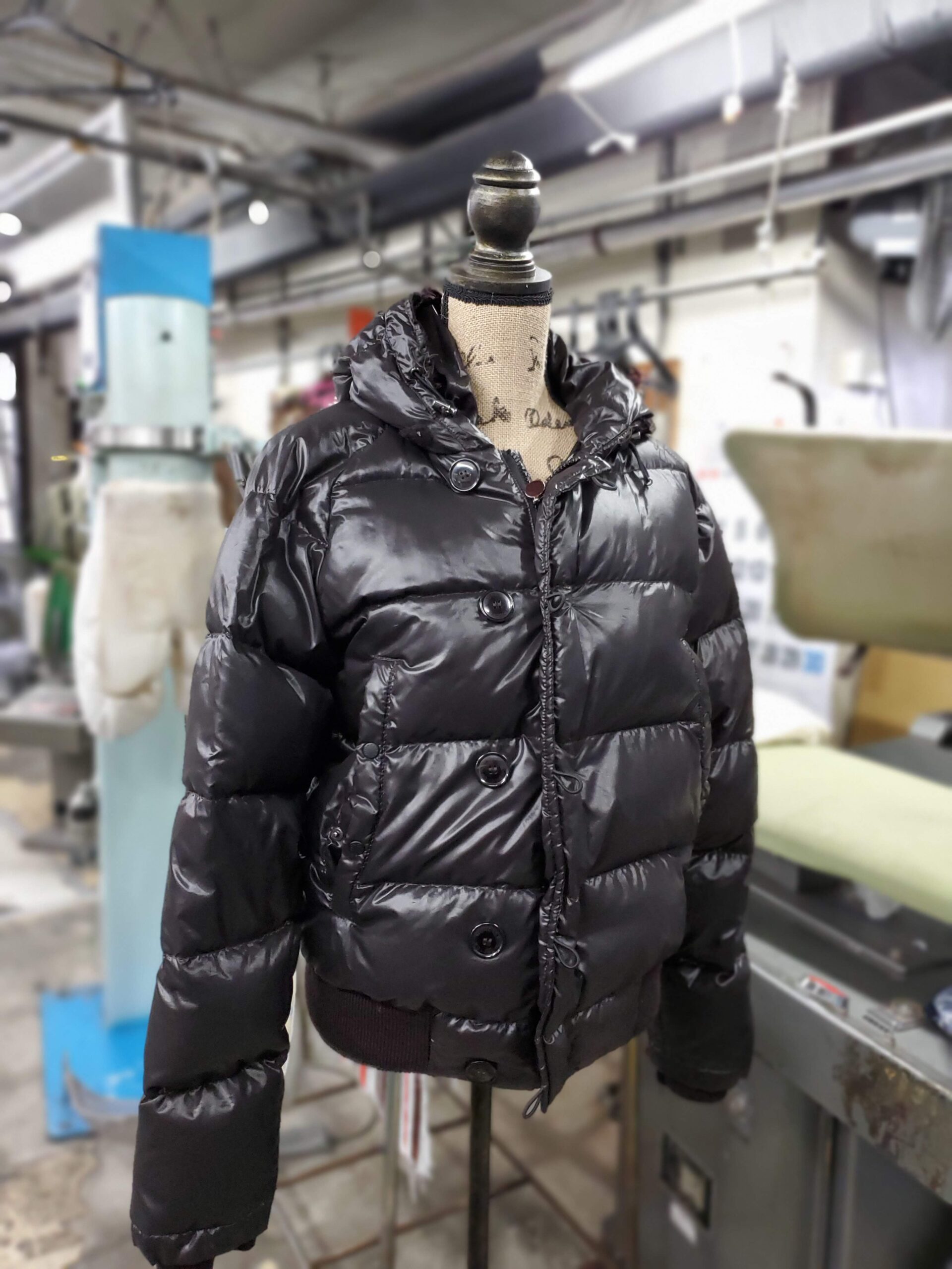 上のモンクレールはべーじゅといいますかグレートいいますかそういった色でしたが、袖の部分が緑に変色していました。こちらはお客様の希望で黒に染め変えたいということだったので、モンクレールクリーニングでしっかり汚れを落としてからモンクレールの染め直しをいたしました。染め変えるお店はネットでたくさんありますが、このクリーニング技法が出来て初めてモンクレール等の染めは生きてきます。そのため、染めの技術は高くても汚れをしっかり落とせる技術がないと色染めは完璧とは言えません。その点、当店は78年のクリーニングの歴史がありますので、汚れを落とすといういみでは誰にも負けない技術を持っております。そして、その技術を活かしてモンクレールクリーニングをし、しっかり汚れを落とした上で、色染めに入ることを徹底しています。また、色染めに関しては、全国のお店さんは色染めまでで終わるところが多いです。つまり染めた後にシワになった状態でもそのままお渡しというところが多いです。これも問題ですね。色を染めれば、当然シワが通常以上に出来ます。しかし、それを伸ばさないでおわたしするということはじぶんでやるとなるととても大変です。PROSHOP HIRAISHIYAではモンクレールクリーニングからアイロンまで最後までしっかり行って、お客サマの手元に届いた時には直ぐに着れる状態になっています。これは安心ですね。