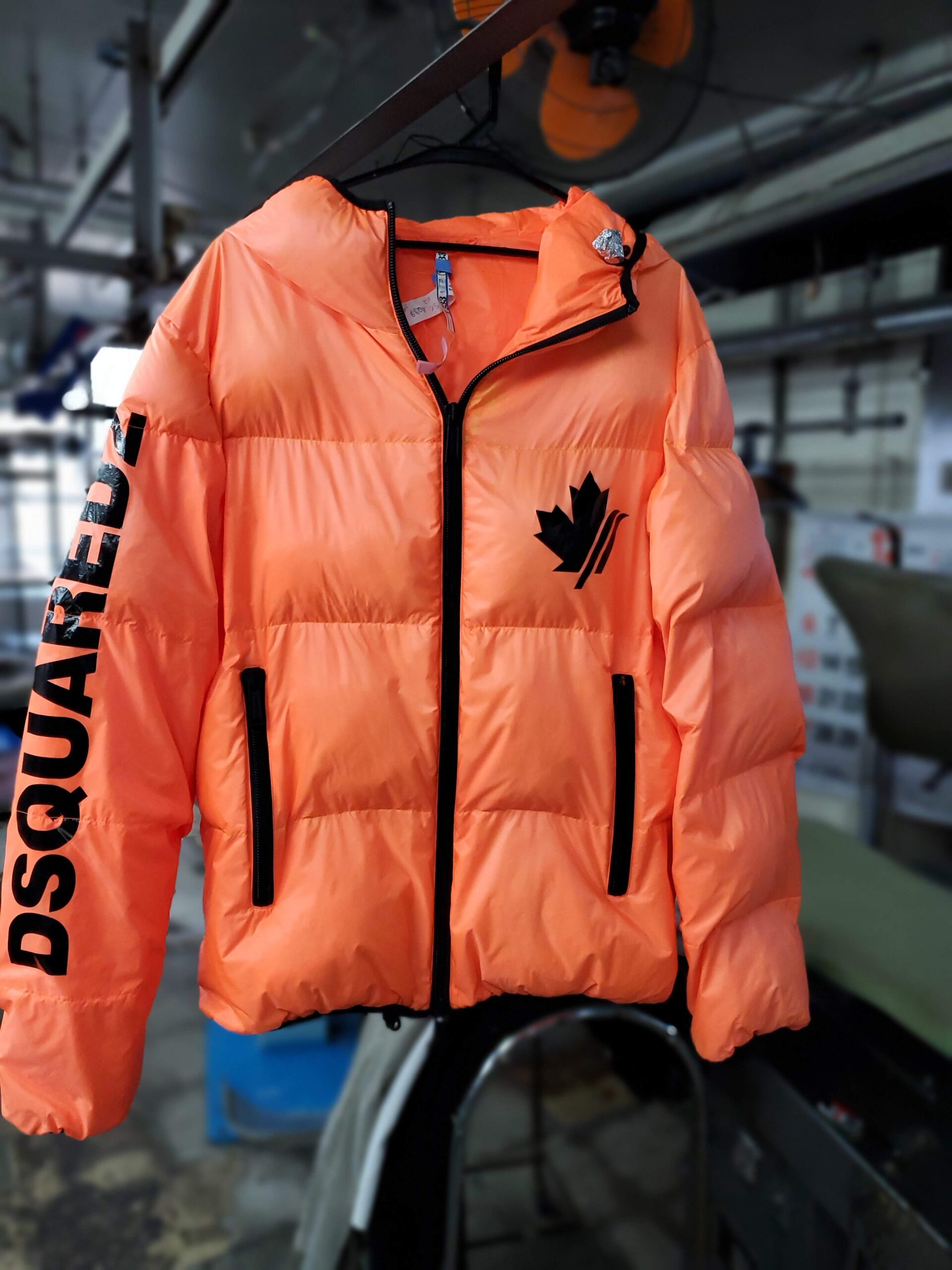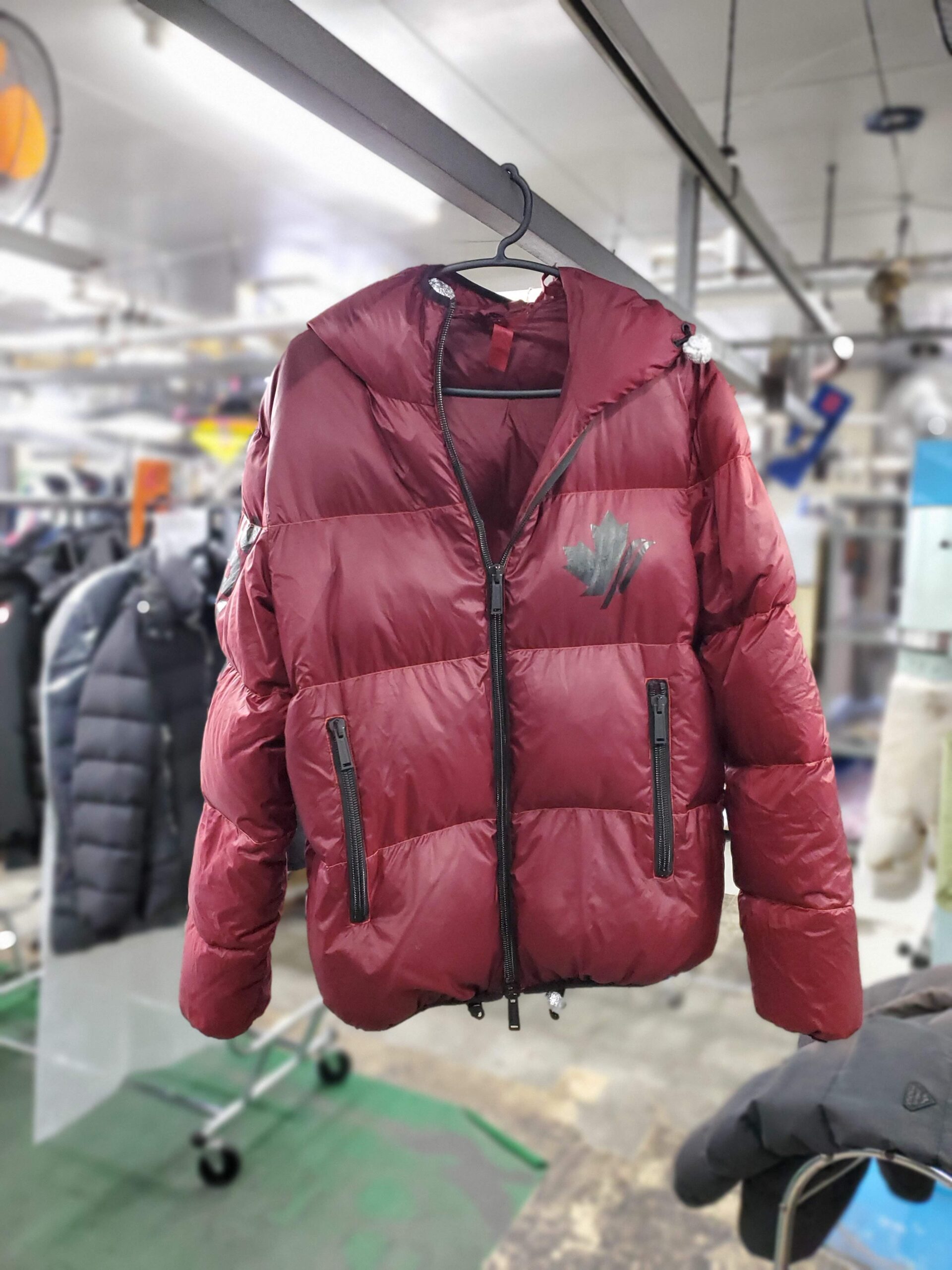 こちらが染め代え後のDsquared2のダウンになります。同じ系統で染めたので、キレイに染まったと思います。オレンジは赤系統ですので、同じ系統のお色で染めるとこのようにキレイに染まります。縫い糸と本体のバランスも考えなければなりませんので、こちらの相性は最高に良かったと言えます。