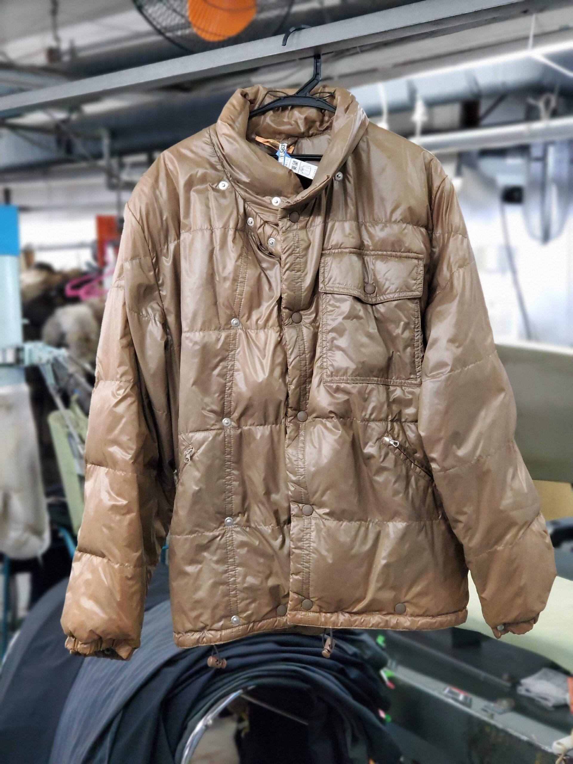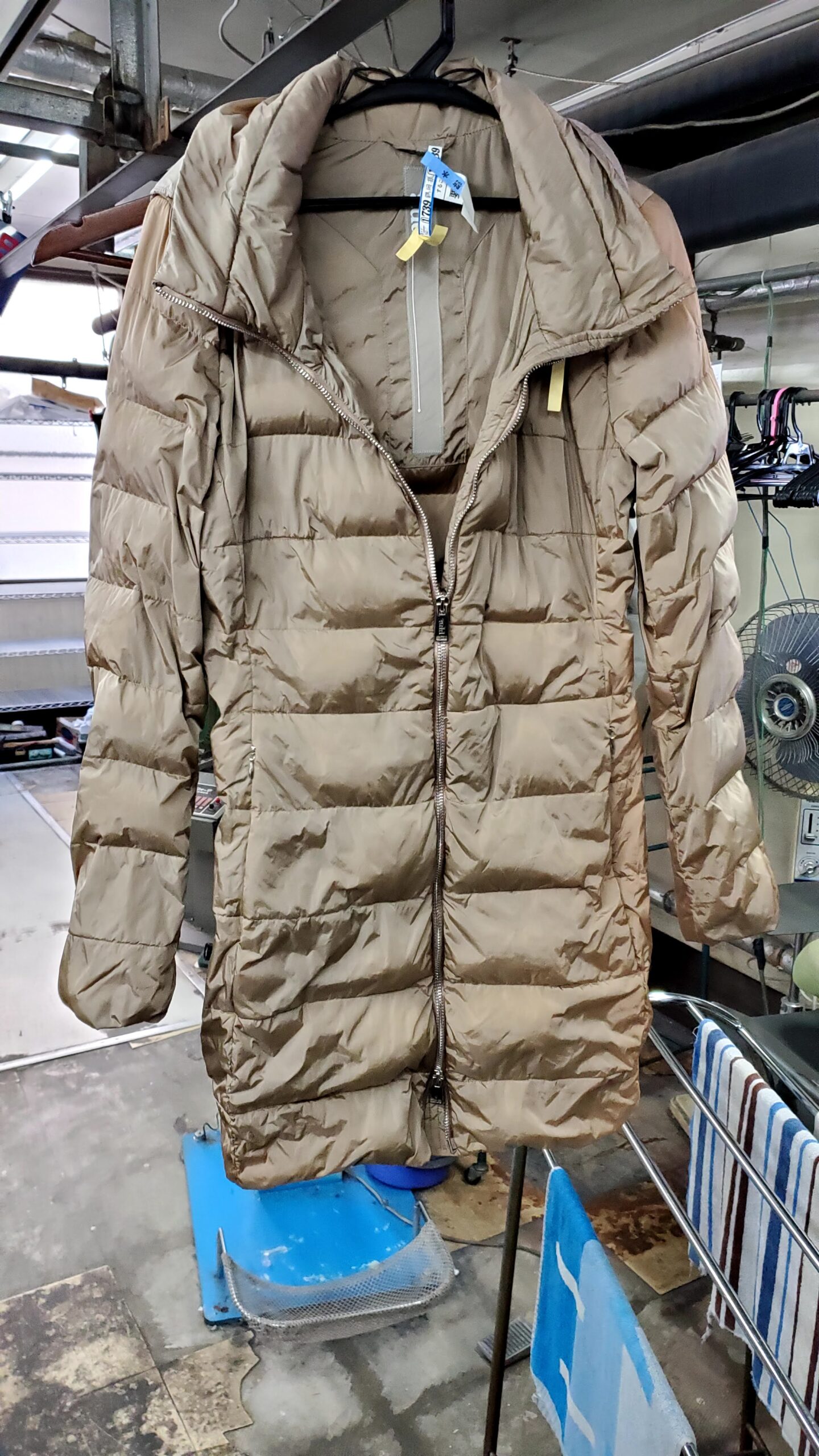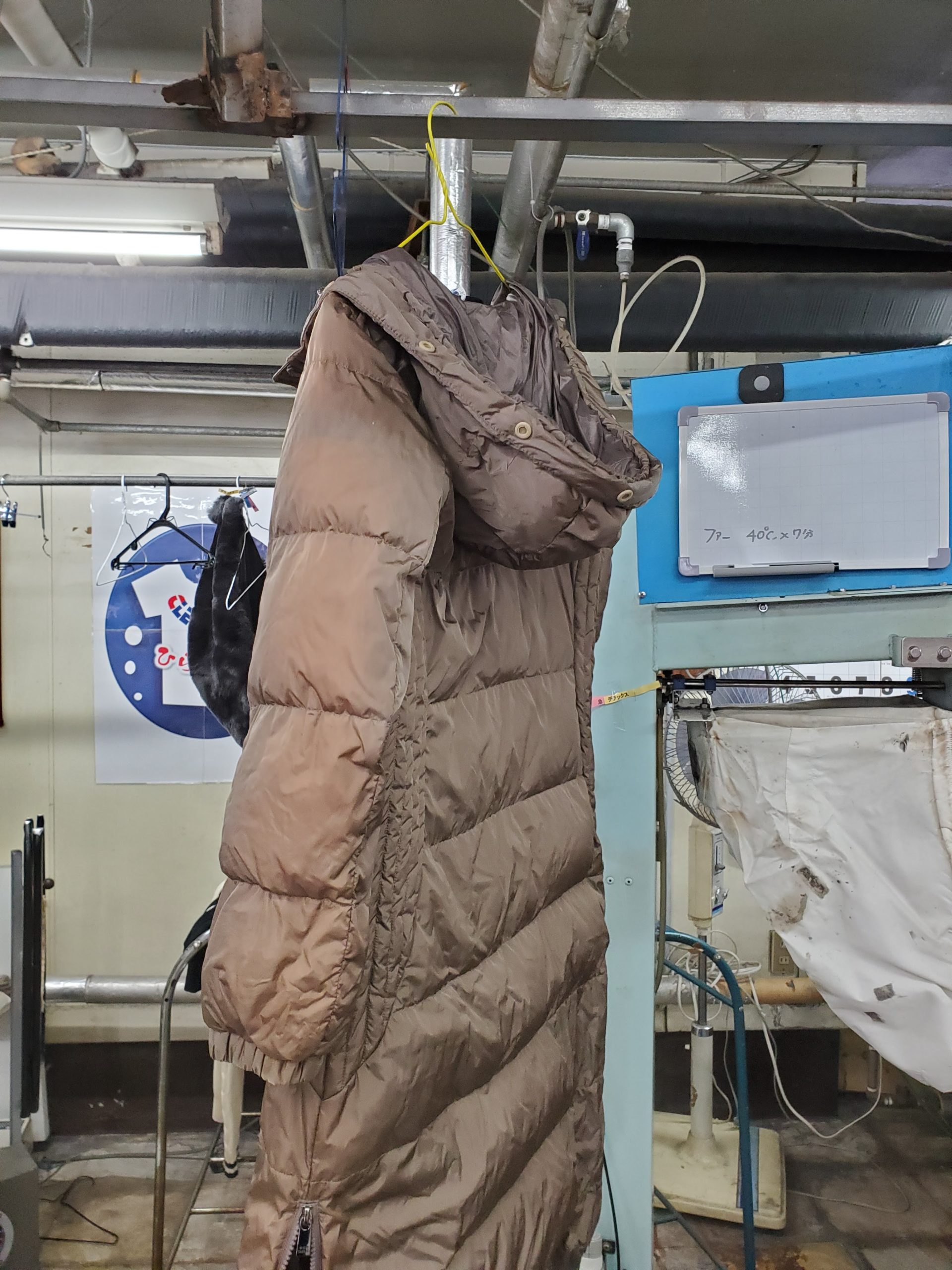 同じダークブロン系でそめたので、そこまで違和感なく完成したと思います。まだお客様にお渡ししていませんが、たぶん喜んでくれるはず。こちらはまた、毛皮ファーがついていたので、染色前に1度外してあります。そのため、染め終わったので、これから毛皮ファーを再度つけなおしするところです。このように毛皮ファーがついたダウンの染色は断られる事が多いらしいですが、PROSHOP HIRAISHIYAではそんな不可能はございません。PROのダウン修理技術者とPROの染色技術者のタッグで不可能をかのうにしていきます!