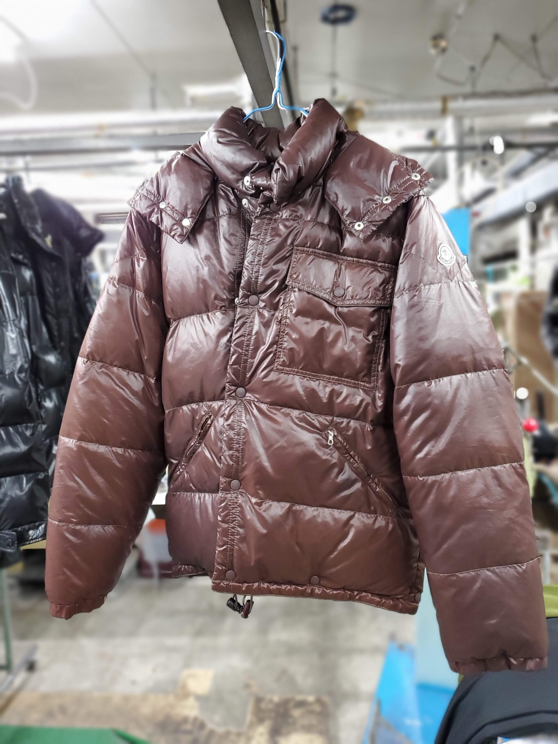 このようにモンクレールをむら無くご希望のチョコレートブラックにすることが出来ました。こちらはまだ仕上がった段階ではないのでボリュームが完全に戻っていますせんが、これからしっかりふっくら加工して仕上げています。れでまた着られると思います。なぜ、モンクレールにこだわって出されるかというと、モンクレールは最高級の羽毛のを使って作られているダウンだからだと思います。これがお安くお求めになった物なら考えるでしょうが、最高級の代えの利かない羽毛だからまた着たいとお思いになられるのじゃないでしょうか?または思いでのモンクレールダウンだったり、お気に入りのダウンだったりと様々だと思います。