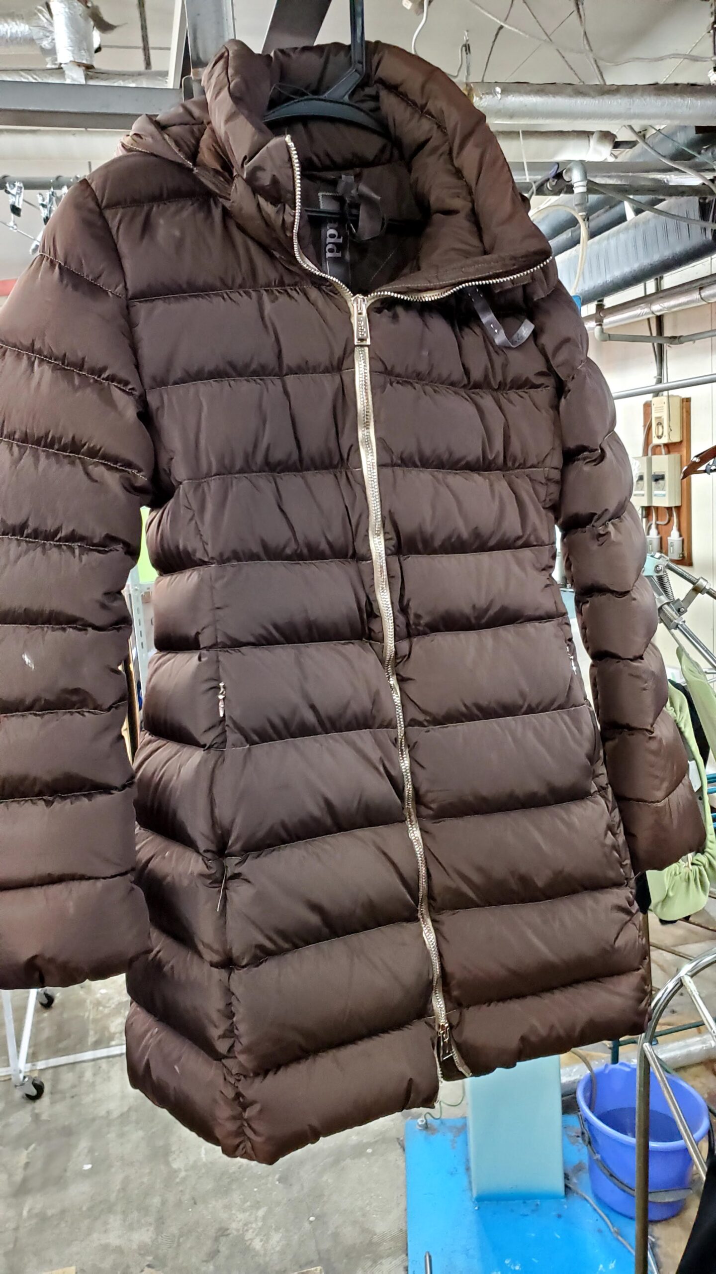 こちららモンクレールを染め変えた後になります。ご希望通りチョコレートブラウンに出来たと思います。写真では明るいですが、実際はもう少し位モンクレールになりました。とてもよく出来たと思います。しかも色も定着し、縮みも2㎝以内とほぼ縮まないことに成功しています。そして、色もご家庭で洗ってもいいように色止めしております。また、着用中に色が出ないようにも色止めしております。これでまた、着られるようになると思います。また、このチョコレートブラウンのお色は世界で一着しかありません。これはとっても貴重ですね。世界で大人気のモンクレールですが、世界広しといえどこのお色は世界に一着しかありません。しかも着れない状態のをこの状態にまですることが出来るってすごくないですか?