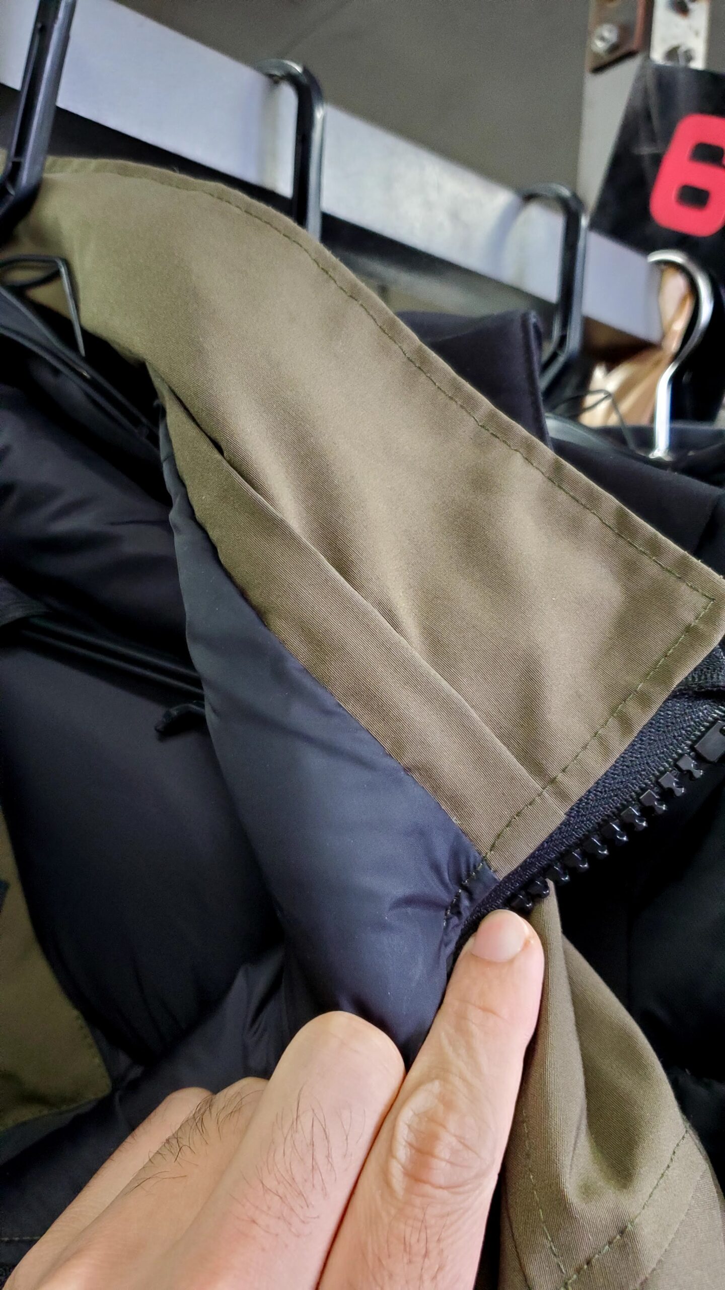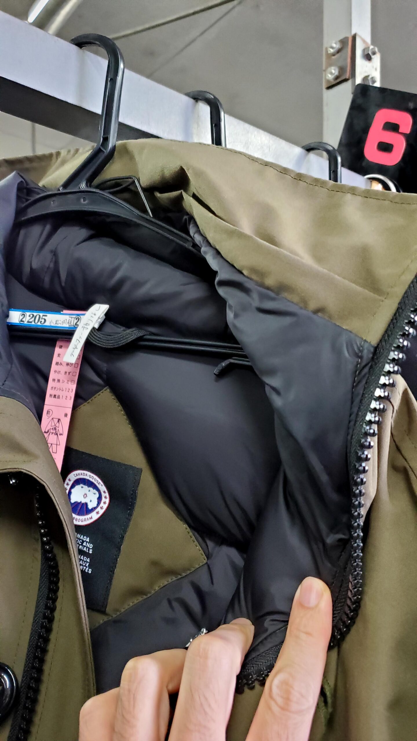 最近はやり初めたこのモスグリーンのカナダグースダウンです。こちらの色はPROSHOP HIRAISHIYAでもたくさんカナダグースクリーニングを受けております。そのため、カナダグースクリーニングの色の癖もわかっております。この生地はしみになると黒くなりますので、そういった部分を落とすのが少し大変です。カナダグースクリーニングは色が最近とても豊富になってきております。昔はカナダグースといえば、黒、ネイビーが主流でしたら、現在はオレンジ、カーキ等のブランドイメージを変えたような印象のものが増えてきております。それではカナダグースクリーニングの説明に入りましょう。