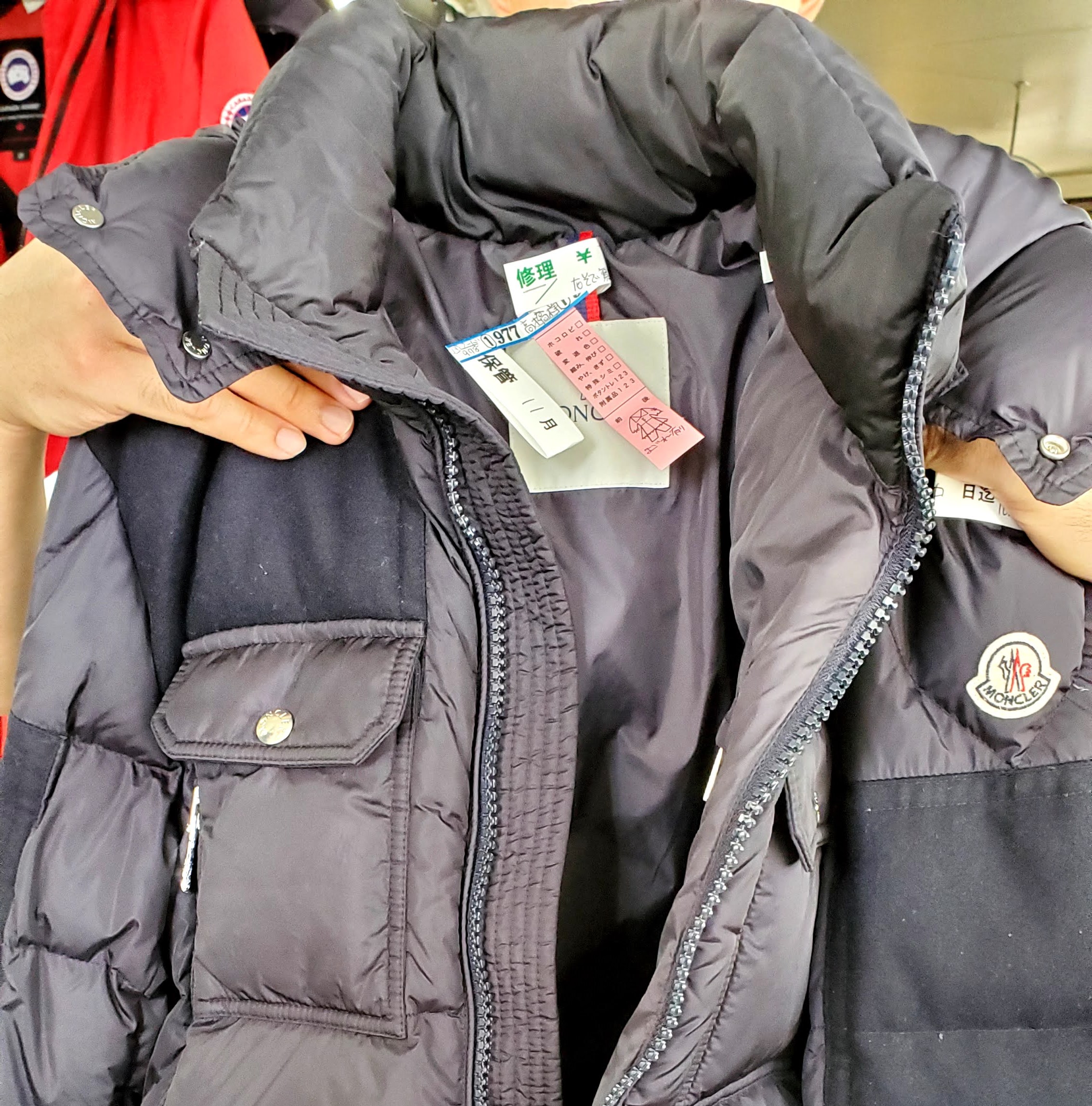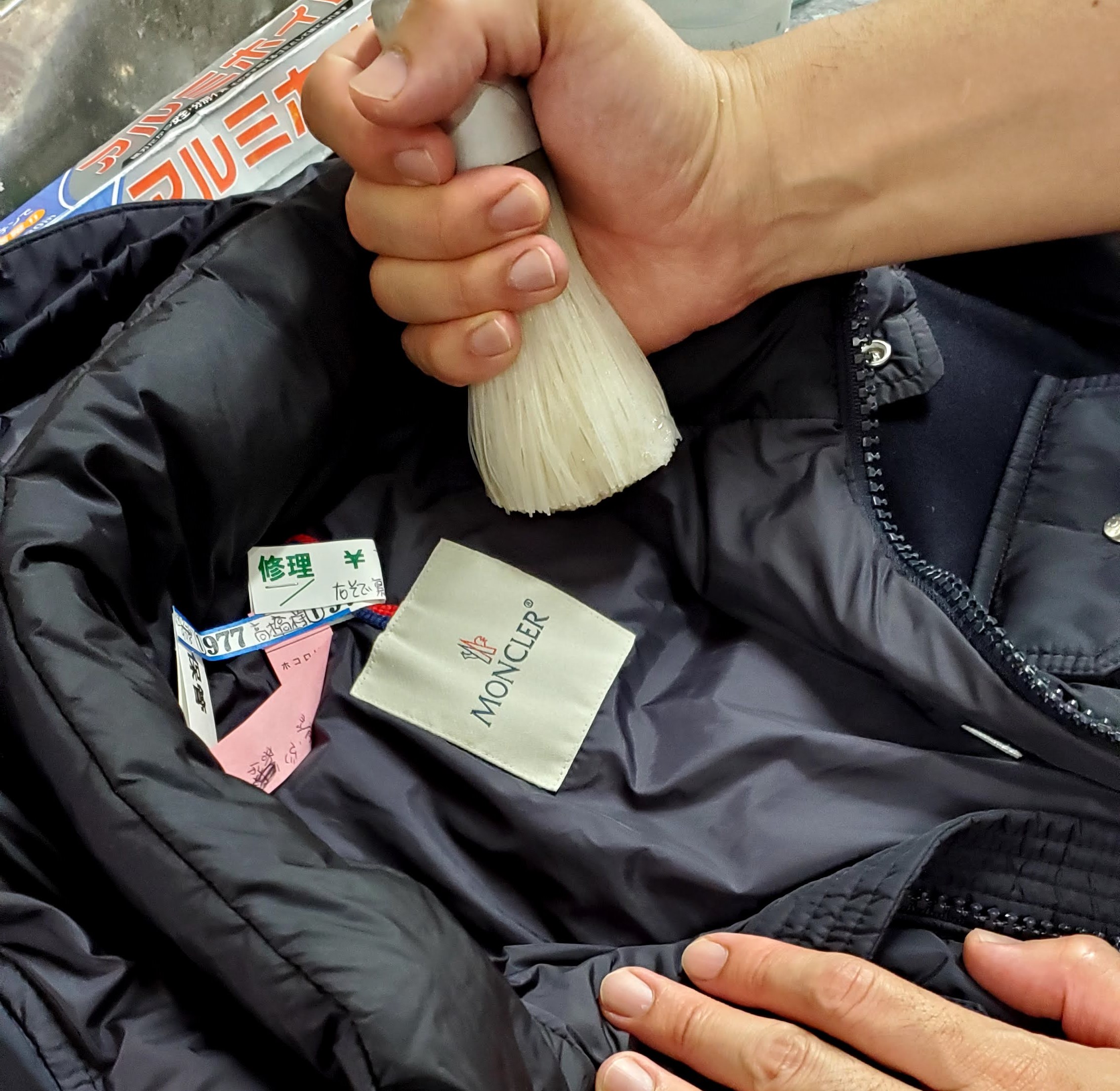 こちらはモンクレールクリーニングで多く出るウールとナイロンが合体したタイプのものです。こういった製品はモンクレールクリーニングのナイロン100%と同じように洗ってしまうと生地をいためてしまう可能性があるため、通常のモンクレールクリーニングでというふうにはいきません。ではどうやってモンクレールクリーニングしているのかということですが、これはモンクレールクリーニングをウールや革専用のPROSHOP HIRAISHIYA特性モンクレールクリーニング方法で行っております。こちらの洗い方はモンクレールクリーニングの中でも特に生地に対して負荷をかけない洗い方になっており、気を付けないといけません。そのため、PROSHOP HIRAISHIYAではこういった一部のウール素材や一部の革はじめ全体も含めすべてモンクレールクリーニングでも通常のナイロンやポリエステルと違う柔らかいモンクレールクリーニングを施しております。そのため、たまにモンクレールクリーニングはどういったモンクレールクリーニング方法をしていますかと聞かれることがありますが、これは一概に言えないというのが正確な答えになります。つまりその素材によって洗い方がまるっきり変わってくるからです。そのため、こういったモンクレールクリーニングはナイロンとウールが合体したものなので、モンクレールクリーニングの中でもさらに注意してく製品なります。ではどういったところが注意が必要かということですが、これはウール製品はデリケートなため、この部分が特に注意が必要になってきます。具体的にいうと、ウールは激しく洗ってしまうと風合いがいたまったり、基本的にウールは水につよくないので、当社のウェットクリーニングで行うときはその強くない素材をいかにしてウェットクリーニング(水)でモンクレールクリーニングするかというのが問題になってきます。PROSHOP HIRAISHIYAではウェットクリーニングにこだわっておりますので、その辺を注しないといけません。これがウェットクリーニングにこだわらないモンクレールクリーニング方法ですとなんの問題もありません。しかし、このモンクレールクリーニング方法をウェットクリーニングではないほうほでモンクレールクリーニングしてしまうと汚れ落ちが格段に落ちてしまいます。そのため、PROSHOP HIRAISHIYAではウェットクリーニングにこだわりを持っております。まして、この当社の特殊ウェットクリーニング方法はモンクレールクリーニング時にダウンのボリュームを膨らませる効果も同時につきます。そのため、自分のモンクレール製品のボリュームがなくなってしまったと感じている方にも最適です。また、ほかのクリーニング店に出したがボリュームがなくなって帰ってきてしまったという方にも最適です。その辺を踏まえてPROSHOP HIRAISHIYAではモンクレールクリーニングは基本ウェットクリーニングを行うようにしております。まして、こちらのモンクレールクリーニングはウールとナイロンのがったいということで特に気を付けてモンクレールクリーニングのウェットクリーニングをしていかないといけません。料金に関してはこのように通常のモンクレールクリーニングと違う特殊ウェットクリーニングをしていきますので、通常のモンクレールクリーニングより若干高めになっております。では実際にどうやってモンクレールクリーニングをしているのかみていきましょう。これをチェックしていただきモンクレールクリーニングの会社さんの選定にしていただければと思います。モンクレールクリーニング方法は様々ありますので、その会社でも洗い方は様々あります。その方法を自信をもって公表しているという会社はまず間違いないかと思います。PROSHOP HIRAISHIYAでは常にモンクレールクリーニング方法を変えております。これは一見、不安に思うかもしれませんが、PROSHOP HIRAISHIYAとしてはとてもいいことだと思っております。常に洗い場の人間と相談し、変化するモンクレール製品にたいしていかに最適な洗い方ができるのかを決めています。現状のモンクレールクリーニングがベストだと思っておりません。今よりももっと素晴らしいモンクレールクリーニング方法はないか毎日研究し、そしてモンクレールクリーニング方法を微妙に、時には大胆に変えているのがPROSHOP HIRAISHIYAのモンクレールクリーニング方法です。これは伝統も大事ですが、それと同じくらい変化も大事だ思っております。そのため、モンクレールクリーニングに対してプライドがありますが、自信は持っておりません。毎日、何か今よりももっといいモンクレールクリーニング方法があると信じて、そしていつも研究して、または毎日のモンクレールクリーニングの中で失敗したことを踏まえて変化してと様々行っております。