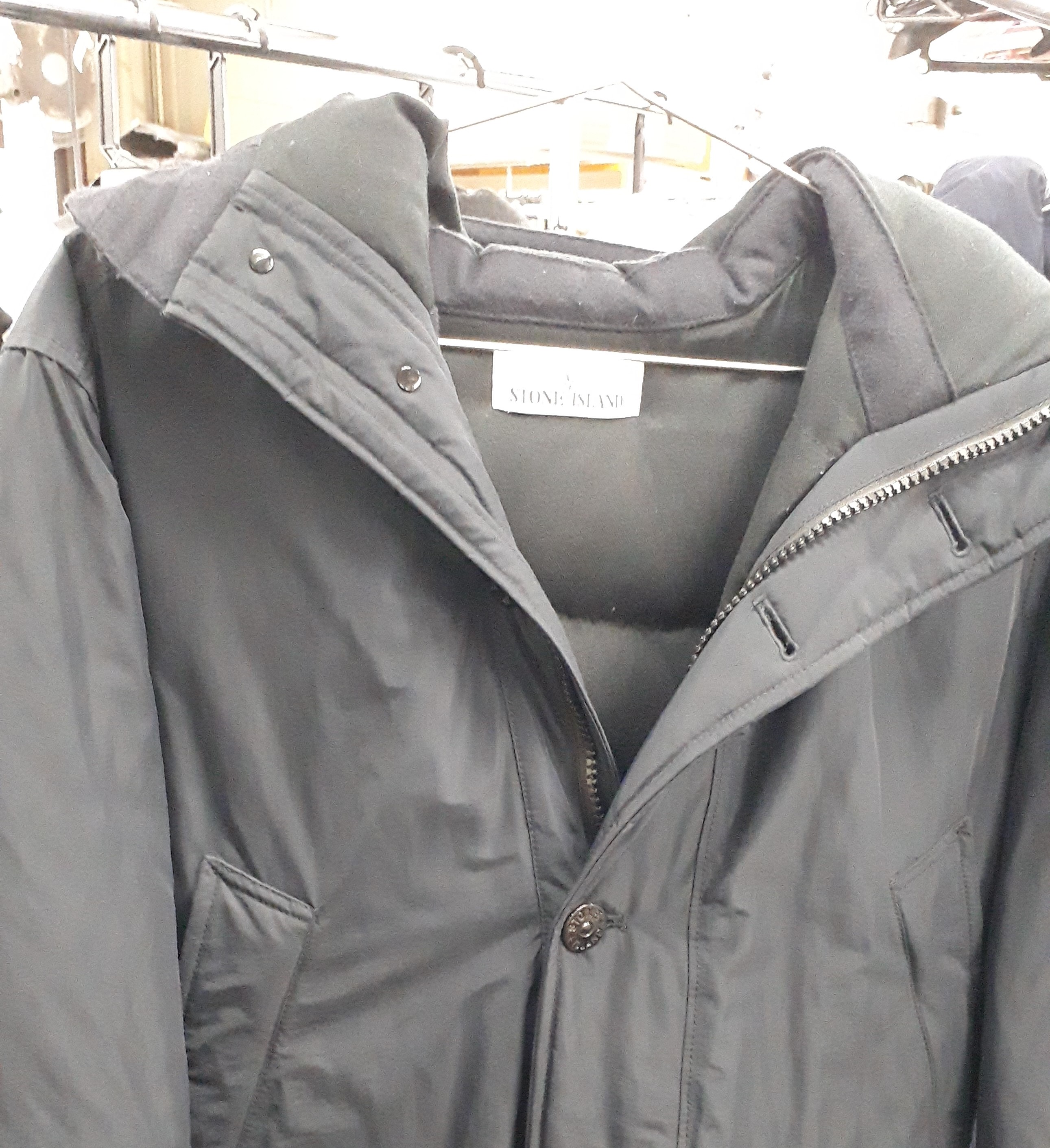 PROSHOP HIRAISHIYAのこのブログでは初のお目見えになるSTONE ISLANDのダウンになります。こちらのストーンアイランドのクリーニングについての特徴としてお話していきます。まずの特徴としては、肩口にワッペンが付いている部分です。こちらは通常取り外し出来ないものがついていることが多いのですが、こちらのストーンアイランドのダウンに関しては取り外しができてしまうので、それを保護して洗わないと行けないのがまず第一です。これはPROSHOP HIRAISHIYAでクリーニングする前にそのワッペンがあるかないかをまず確認し、あればあったと文章に残しておきます。これはストーンアイランドの命といっていいでしょうから、これがまずあるかないかはしっかり記録にのこしておかないといけませんので、そのへんを徹底しております。そしてあれば、そのワッペンを1点ずつ保護してとれないように加工してからクリーニングいたします。ストーンアイランドは様々な素材で作られているので、代表的なものをあげることは難しいのですが、他の高級ダウンにない特徴の素材になっております。ストーンアイランドでよく出るメインのものは色の褪せが起こりやすいため、染替したほうがいいものもあります。ずっと着続けるとどうしても色があせてきてしまうことはあります。よくあるのが綿が入っているもの。こちらは色があせやすいです。そのため、気になった場合はご相談ください。色が染めやすい素材と染めにくい素材と様々ありますので、その点はプロの目で見ないといけませんので、そのときはいつもでどうぞ。こちらの素材も少し色があせてきている感じがしますが、まだ大丈夫だったので、クリーニングのみとなりました。クリーニングして色が褪せることはあるのか?というところは気になると思いますが、クリーニングすると多少色は褪せます。これは自然現象なので、避けられません。クリーニングしないと汚れは取れない、でもクリーニングすると多少色が褪せてくる。これはどちらかを選ばないといけません。プロショップひらいしやでは色止めしてからクリーニングしておりますので、色が抜けるといったことはめったにありませんが、たまたに色が抜けやすいものがあり、そういった場合はクリーニングを最小限にとどめて行きます。