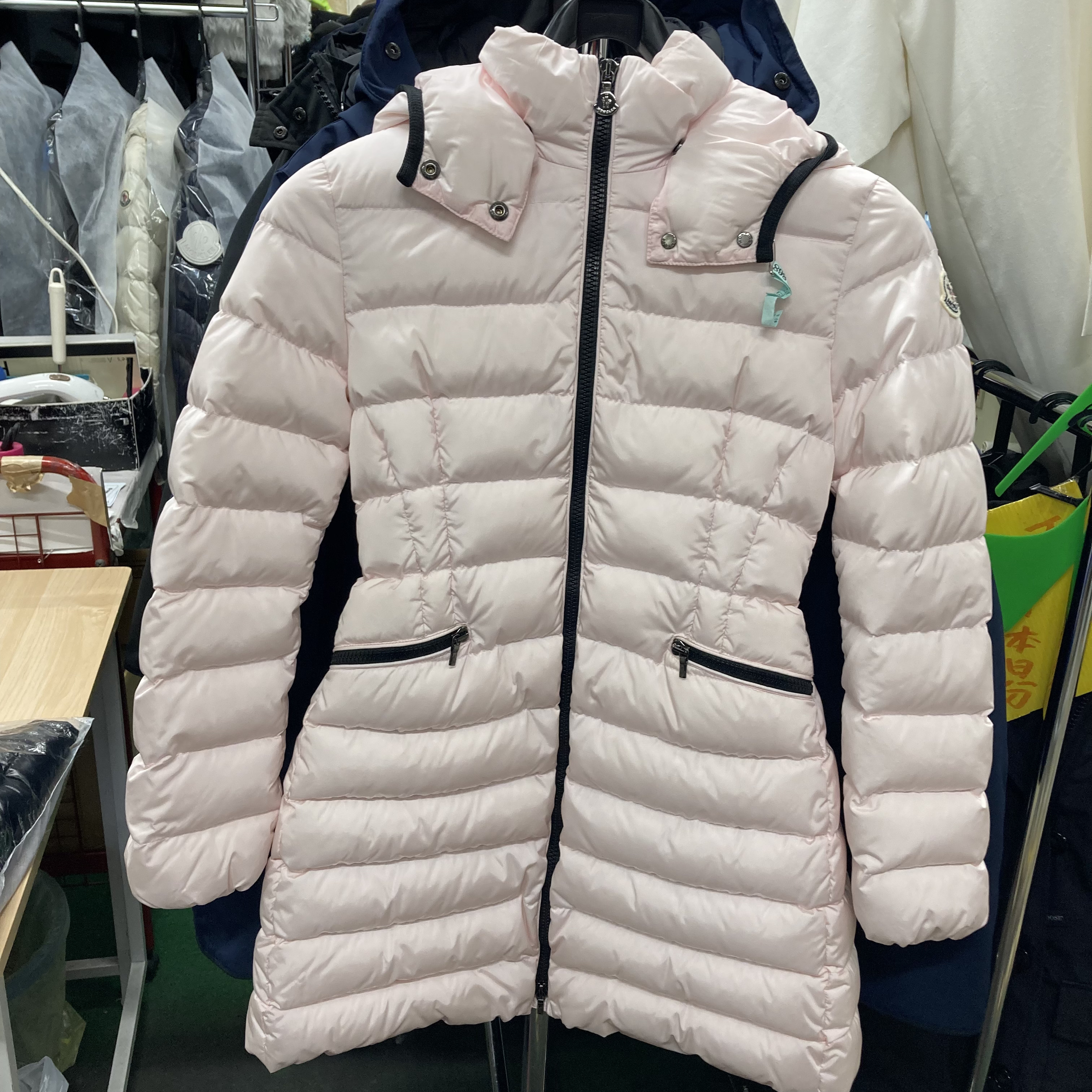 こちらは先日お客様からご依頼のあった珍しいベビーピンクのモンクレールダウンになります。PROSHOP HIRAISHIYAはモンクレールダウンのダウンクリーニングが大変ご好評を頂いており、このような珍しいデザインのモンクレールダウンをお預かりすることも多々ございます。柔らかいピンクの色合いがとても素敵なお品物ですが、このような淡いお色ですとやはりお客様が気になってくるのが黒ずみなどの汚れかと思います。ホワイトのモンクレールダウンもそうですが、大体の方はカウンセリング時に首元の集中シミ抜きをご希望されます。こちらのお客様も首元の汚れと背面のシミ、全体的にくすみが気になるということでご依頼を頂きました。モンクレールダウンで多いのが薄いナイロン生地のデザインですが、今回お預かりしたこちらのダウンも例外ではなく薄いナイロン生地のモンクレールダウンとなっていて機能性は抜群で暖かいと人気ですね。このようにデザイン性が高いモンクレールダウンだと仕方のないことなのですが、買った当初の綺麗な状態の時は良いのですが、しばらく着ていくうちに汚れが気になり目立ってきた際にどうしよう。とメンテナンスに悩まれる方は多くいらっしゃるのではないでしょうか。モンクレールダウンのホワイト系はとても人気がありで私自身も憧れるお色味です。モンクレールダウンなどのダウンジャケットの汚れにもおすすめなのがウェットクリーニングといって水洗いの手法です。水洗いが良いと聞いてご自宅の洗濯機で洗ってしまうのはNGです。知識や技術なく水洗いをしてしまうと、最悪の場合ダウンジャケットとしての役割を果たせないほどの姿になってしまいます。特に高級ダウンといわれるモンクレールダウンは使われている素材が特殊であることが多いため通常の一般的なクリーニング店でも扱うのが難しいとされています。せっかく高級ダウンを購入したのに使い物にならなくなってはショックも大きいかと思います。そのようなことにならないようウェットクリーニングに関して知識があり信頼できる専門店へのご依頼をおすすめいたします。メンテナンスにお困りの際はモンクレールダウンのウェットクリーニングで数多い実績を持つPROSHOP HIRAISHIYAへご相談ください。それぞれのモンクレールダウンに適したクリーニング方法をご提案させていただきます。では早速ご紹介していきましょう。