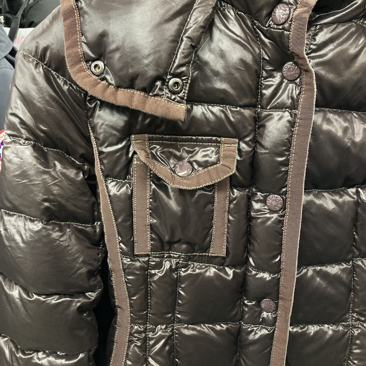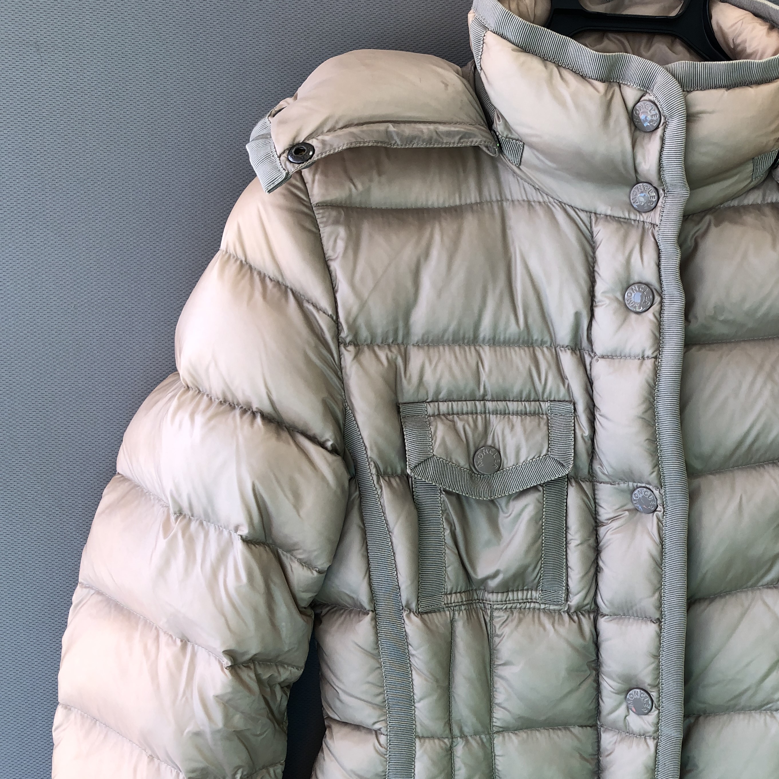 こんにちは。PROSHOP HIRAISHIYAです。弊社はモンクレールクリーニングを多く扱う高級ダウン専門の宅配クリーニング店です。創業75年の地元で愛されてきたクリーニング店ならではの経験と技術でモンクレールダウンのクリーニングはもちろんのことモンクレールダウンのリペア、染め替え修理などお客様の様々なご要望にも柔軟に対応できることも魅力です。今回はモンクレールダウンクリーニングの実績紹介でご紹介いていくモンクレールダウンは、こちらのベージュカラーの”エルミンヌ (HERMINE)”です。モンクレールダウンで女性からナンバーワンの人気を誇る”エルミンヌ (HERMINE)”は軽くて暖かく女性らしい美しいシルエットで、その人気もうなずけるデザインになっています。ベージュのカラーも上品で軽やか、華やかで素敵ですね。光の当たり具合によってシルバーグレーからシャンパンベージュへお色が変化するそうですよ。モンクレールダウンのような高級ダウンはシンプルなブラックをお選びする方が多い印象ですが、ベージュも人気なことがよくわかります。しかし、このベージュカラーのモンクレールダウンはかなりの確立で変色するんです。今回お預かりした”エルミンヌ (HERMINE)”も例外ではなく変色しておりました。変色の仕方としては色あせたようにオレンジっぽくなったり、緑色に変色してしまう場合も弊社では多く見てきています。そして、モンクレールダウンに限らずHERNO(ヘルノ)のベージュカラーのナイロンダウンも変色が多いです。PROSHOP HIRAISHIYAでは職人技である”しみ抜き”も人気のオプションなのですが、しみ抜きを希望されて送っていただいた品物を実際に見てみると、お客様がよごれだと思っていた部分が実は変色だったということも頻繁にございます。変色は生地自体が劣化して起こる現象で、そもそも文字通り生地の色が変わっているので、いくらしみ抜きをしても元の色に戻すことはできません。そうなると、変色したまま着用するかということになるのですが変色の状態が著しく、広い範囲が変色しているのであればPROSHOP HIRAISHIYAの”全体染め”もおすすめです。この”全体染め”というのはその名の通り全体を染料で染め上げていくメニューとなります。いくつか注意点もございますのでご紹介していきたいと思います。