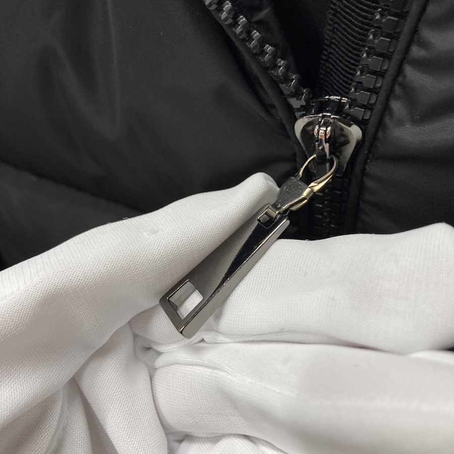 こちらは、今回モンクレールクリーニングと合わせてご依頼をいただきましたモンクレールダウンのファスナートップの修理箇所のお写真です。上部のファスナートップが取れてしまっていることが伺えます。このモンクレールダウンのファスナートップ修理は意外にもPROSHOP HIRAISHIYAに多くご相談を頂く修理内容でございます。ファスナーというものは衣類の中では負担がかかりやすい部分になるので”消耗品”という扱いとなっております。というのも上部のファスナートップだけ外れるという所を見てご想像が出来るかと思いますが普段からファスナーを開け閉めする際に力が入るので目には見えませんが徐々に劣化が進んでいきます。純正のファスナートップ自体が再利用可能な状態の場合には接続部品を新調し付けなおしさせて頂くことも可能です。モンクレール純正のファスナートップが再利用できない状態の場合や紛失してお手元にないといった時には弊社オリジナルの汎用品にて修理をさせて頂きます。今回は取れてしまったモンクレールのファスナートップがお客様のお手元にないということで、純正のファスナートップに近い部品にてご対応させて頂くことをご了承頂きました。