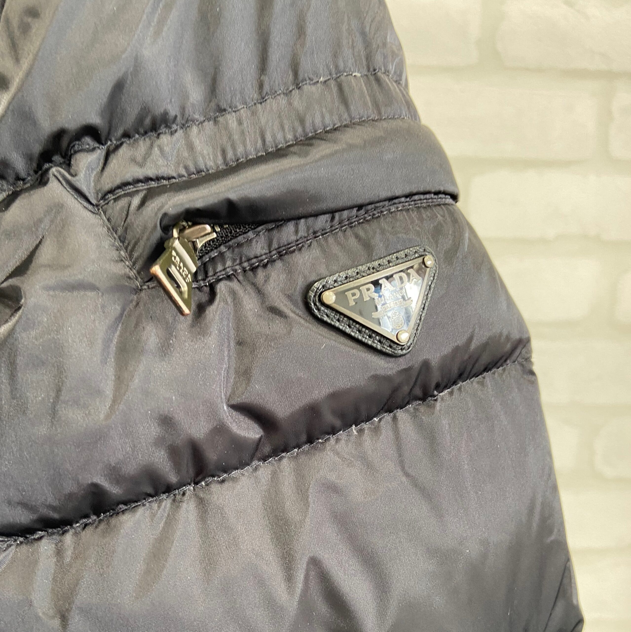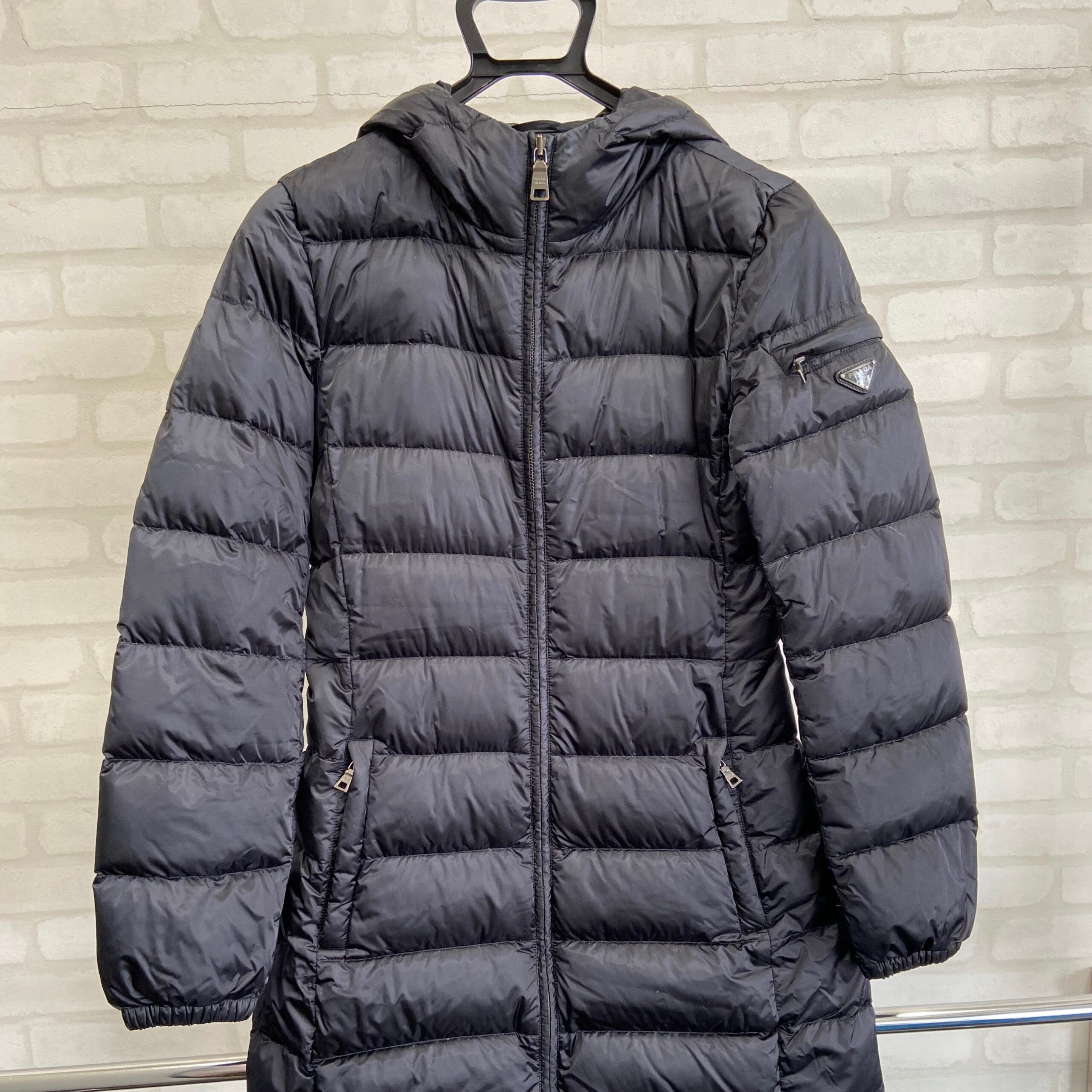 こちらはプラダのダウンコートになります。PROSHOP HIRAISHIYAではプラダのダウンはモンクレールやカナダグースに加えて受付するダウンの一つです。過去には1000点以上受付しております。プラダのダウンの特徴はポリステルでできていることが多く、強目にできています。そのため、変色や破れに強く他のダウンジャケットに比べたら強めの設定になっております。こちらのダウンジャケットは黒の素材ということで、使用を長くしても大丈夫な生地になります。それくらい強い生地の為、安心な素材です。こういった私たちは何千着とダウンジャケットを扱っているため、ダウンの使い方、寿命が大体わかります。こちらのプラダのダウンジャケットはかなり寿命が長いです。全体的に光沢のある黒のダウンで、この黒の艶あり感は日本では出せないものです。プラダはイタリアで生まれたブランドで、有名なダウンジャケットは大体イタリア産が多くなっております。イタリアはおしゃれな国のイメージですが、プラダのダウンジャケットはそれにももれうシンプルですが、とても上品な仕上がりになっております。このプラダのダウンの特徴は肩口に見える皮のマークになります。その上に載っているのがプラダのロゴマーク。これは本革になりますので、とても特徴的ですね。このプラダのダウンジャケットは当社ではよく見かけます。とても人気なものと思われます。これをこれからクリーニングしていき、キレイにします。いくら生地が強いからといって、強く擦りすぎてしまうと生地が痛むので、優しくブラッシングしていくのが基本となります。まずは全体的な状態を見て、部分的に染み抜きをしていきます。これをするのが最も大切です。プラダクリーニングをする上で、欠かせないのがこの前処理です。この前処理を行わないとPRADAはキレイになりません。こちらのプラダのダウンジャケットは全体的に汚れがありました。黒なので、汚れが目立つというのもあります。白い汚れはとても目立ちますが、同じく黒っぽいシミやわじみはよく見ないとわからないです。その為、白の汚れはいいですが、黒の同色のシミを見つけるのには人間の細かな観察力が大切になってきます。よく見ながら行いました。比較的汚れは少ない方でしたが、全体を満遍なく処理していきました。そうすることによりキレイになっていくのがわかりました。全体を見る目がとても大切になっていきます。