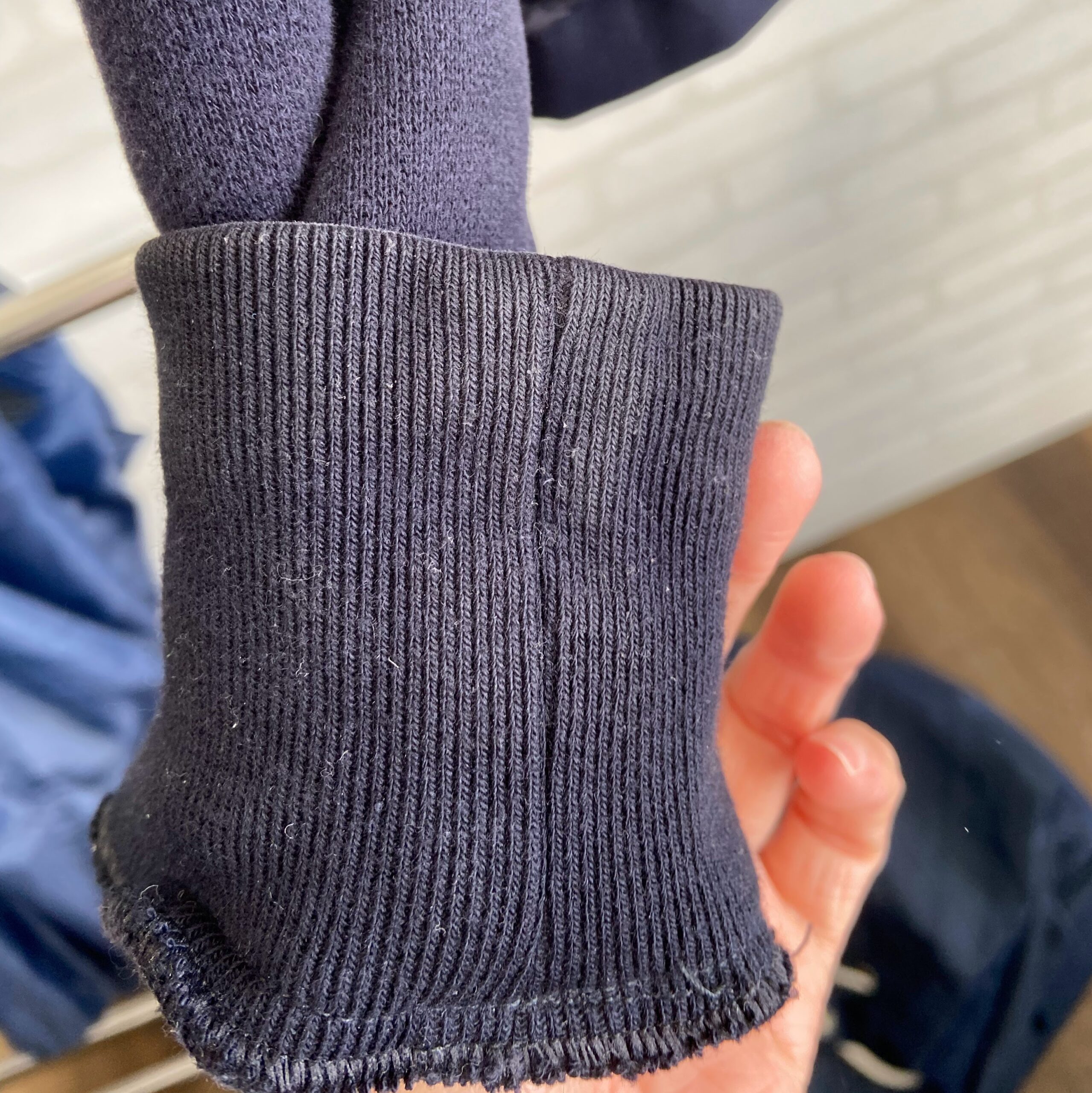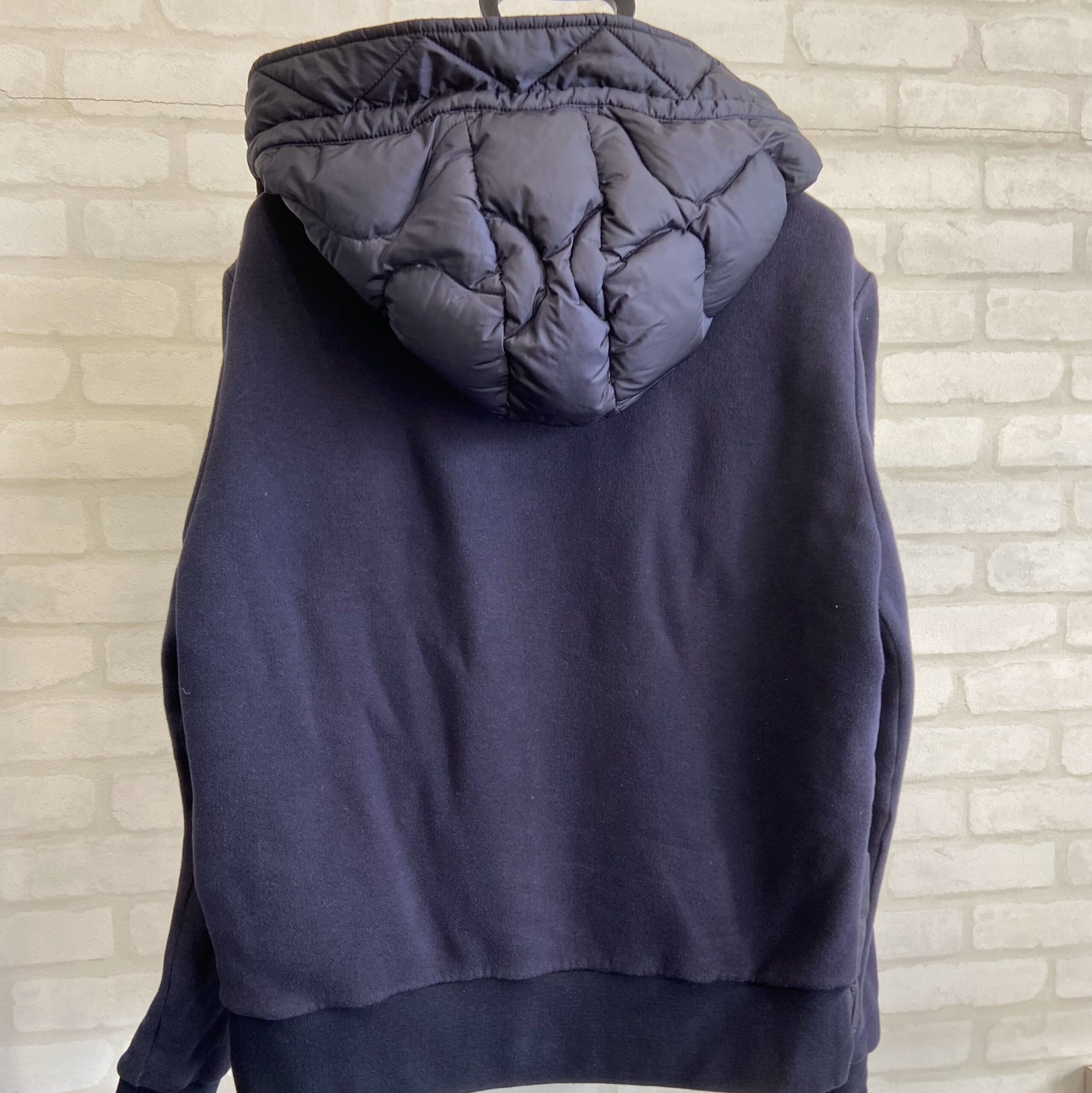 こちらは背中から撮った写真です。背中は特に汚れがないように見えますが、実は背中ほど汚れがついているところはないのです。理由はモンクレールの製品は品質に優れていて、保温性も高いため、熱が外に逃げないように作られております。そのため、人間の汗をかいたときに、その蒸気が中にこもり、汗の蒸気となって衣類についております。そのつく最もな箇所がこの背中となります。背中は多くの同じ素材の面積を要しておりますので、たっぷり汗が染み込んでおります。こういったところも放置していると変色の原因になります。その素材によって変わりますが、綿やウールは特に変色しやすくなります。綿の場合は変色、ウールの場合は黄ばみとなって現れることが多いです。そのため定期的なモンクレールクリーニングは必要不可欠となります。汗をそのまま放置しておくとそうなってしまうので、それを取り除くことが必要なんです。そうしてクリーニングして汗や汚れを取り除いて綺麗にしてから保管や着用するとまず変色の心配はありません。中にはウール等はドライクリーニングして場合が多いですが、その場合も汗の成分は残り変色してしまうこともありますので、ご注意ください。