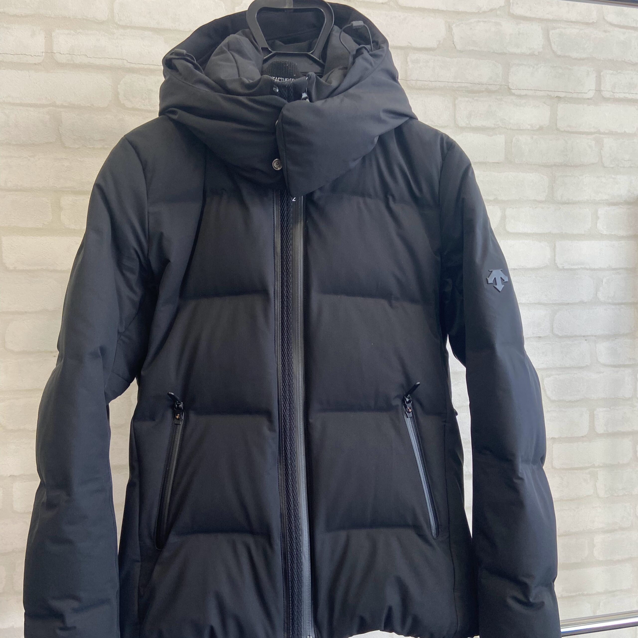 こちらのマークは水沢ダウンお馴染みのマークになります。プラスチックで作られており、とても素敵なマークですね。デサント オルテラインさんのマークだと思われます。こちらはクリーニングをなん度も行ってきましたが、たまにのプラスチックの周りが破損してしまう事故が起こったことがありました。こちらはプラスチックのマーク部分と周りの生地とが違うため劣化することが多々あります。そうなると、どうしてもクリーニングやその他、動きがあると異素材の隙間ができてしまう現象が起こります。これは避けて通れない症状になります。当社でお直しを何度かさせていただきましたが、直しても少し時間が経つとまた同じ症状に戻ってしまうことがありました。そのため、こちらを防ぐ方法は今のところ見つかっていなく、しかも完全に戻すというのは難しくなります。今回の水沢ダウンのクリーニングは何も起こらずに無事綺麗にできました。これはクリーニングして見ないとわからないことが多くあるため、未然にお知らせすることは難しくなりますので、その点だけはご了承願います。何にせよ、今回はその症状が起こらなかったため、無事クリーニングを終えてよかったです。