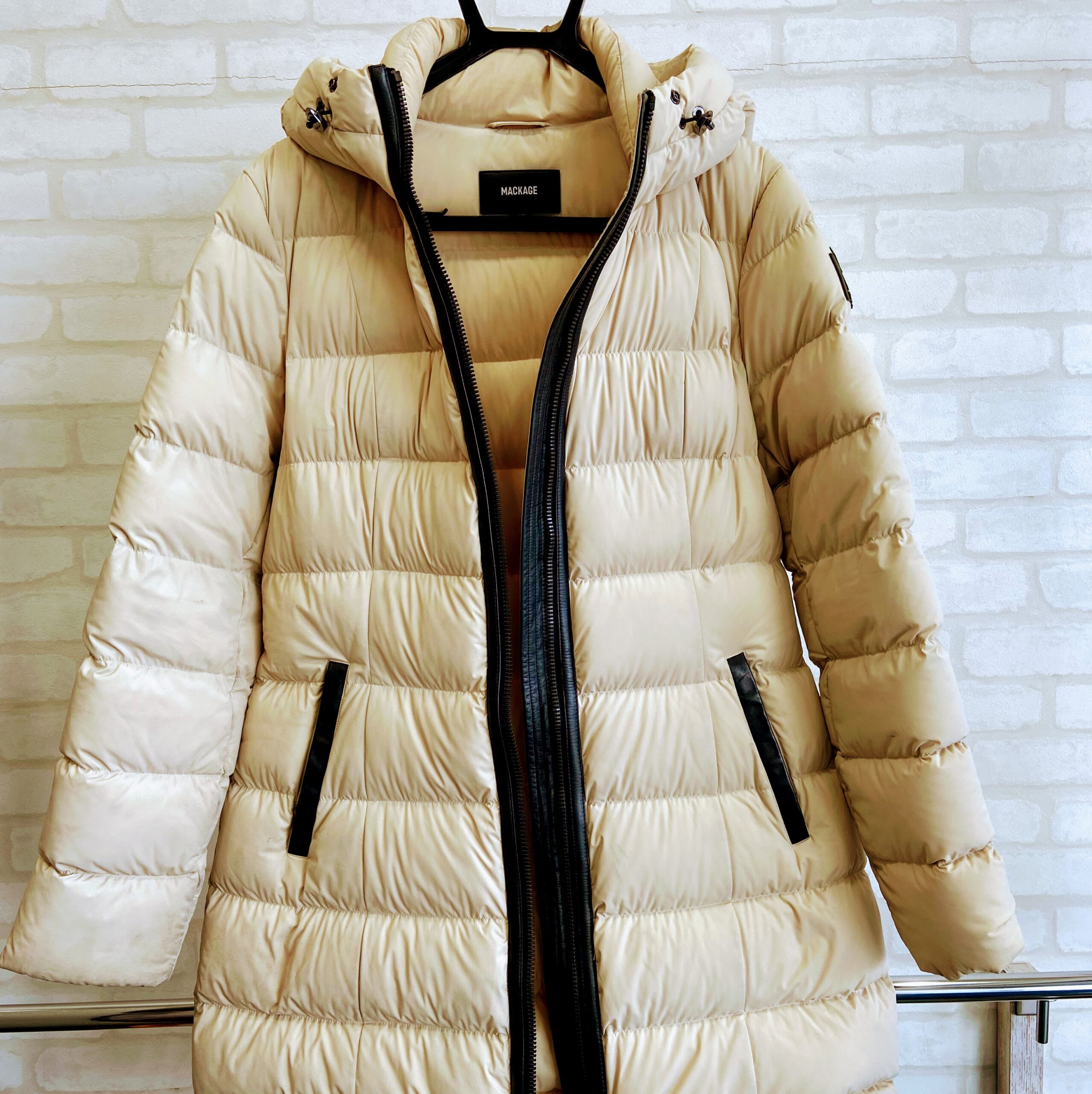 今回クリーニングのご依頼をいただきましたのは、カナダ発のラグジュアリーアウターブランド、マッカージュ(Mackage)の製品です。マッカージュは「世界で最も洗練されたアウターウェア」を目指して1999年に設立されたブランドです。機能性とラグジュアリーなファッション性の絶妙なバランスが最大の魅力です。マッカージュの最大の特長は、卓越したシルエットとデザインにあります。ダウン特有の「着膨れ」を抑えるためウエストをシェイプした立体的でタイトなカットが美しく、女性らしいスタイルを引き立てます。また、フロントファスナーやポケットの縁にあしらわれたレザーのパイピング(トリム)は、ブランドの象徴的なディテールとなっています。このレザー使いが、スポーティーになりがちなダウンに都会的でモードな高級感を与えています。それでありながら、カナダの厳しい冬にも耐えうる高い機能性と防寒性を備えています。高品質なナノダウンは優れた保温性を誇り、表地には撥水・耐水・透湿性に優れたストレッチ素材が使われることが多く、動きやすさと快適さを両立しています。さらに、ポケット内部のフリース素材(ハンドウォーマー機能)など、細部まで寒さ対策が徹底されています。「ダウンに見えないほどエレガント」でありながら、本気の防寒着としてのスペックを併せ持つ点が、感度の高い大人に支持されています。カジュアルからフォーマルなシーンまで着回せる汎用性の高さが、プレミアムダウンの中でも一線を画す人気の理由です。モンクレールやカナダグースをはじめとした高級ダウンのクリーニングを多数請け負っているPROSHOP HIRAISHIYAにおいても、マッカージュはよく持ち込まれるブランドのひとつです。しかし、マッカージュのダウンは他のブランドと比べても大変繊細なもので、スタッフ一同特に気を使いながらクリーニングを行っています。その理由は、マッカージュ製品に使用されてる生地の特殊性にあります。複数の素材を組み合わせて縫製された「異素材ミックス」ダウンは、それぞれの素材ごとの特性を損なわないようにお手入れする必要があります。マッカージュといえばの、各所にあしらわれている本革は特に気を配る必要があります。そこで今回は、PROSHOP HIRAISHIYAにおける革を使用したダウンのクリーニングについて実例を交えてご紹介します。