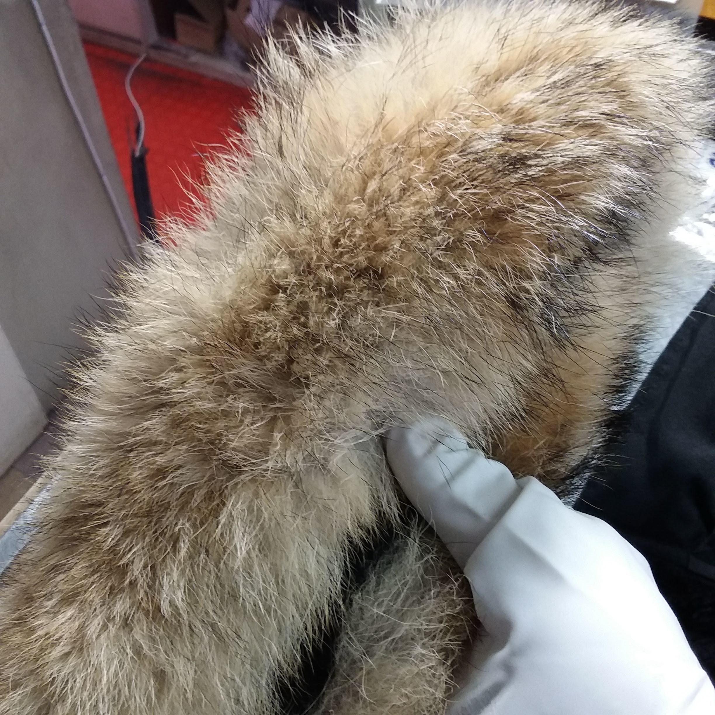 ブランドダウン、高級ダウンに必ずといって良いほど毛皮ファーが付いていますが、PROSHOP HIRAISHIYAのファークリーニングの方法は日本でも数少ないウェットクリーニングをしているのが当社です。通常、メーカー推奨のファークリーニングの洗い方はドライクリーニングです。しかし、それでは汚れは落ちません。毛皮ファーは意外と大気に触れて汚れています。外を歩いていれば、車の排気ガスはついていますし、雨や雪で汚れることもあります。それをドライクリーニングで洗っているだけでは落ちません。そして、ドライクリーニングだけで終わらせていると、いずれ変色してきてしまうものもあります。そのため、当社プロショップひらいしやではウェットクリーニングを推奨しています。ウェットクリーニングの良いところは、毛皮ファーについた排気ガスや人間の汗、その他泥汚れ等すべてキレイに出来ます。そして何より、毛皮ファーの風合いがふっくら蘇ります。それなので、当店としては高級ダウンクリーニングと一緒にファーのクリーニングもオススメしております。世の大抵のお店はドライクリーニングで行っている、もしくは洗わないで出しているお店も中にはあると聞きます。これでは汚れが取れるどころか、逆に毛皮ファーのボリュームが無くなってしぼんだ状態で返ってくるということもあります。そういった事から、当社ではしっかり水でウェットクリーニングをするので、毛のボリュームが戻るのは勿論、風合いも抜群によくなります。ウェットクリーニングであらうだけではダメで、当社独自の乾燥法があり、それをすることにより、ウェットクリーニング後にしぼんでしまった高級ダウンの毛皮ファーのボリュームを復元することに成功しました。これは当社独自の技術です。これも当社クリーニング師考案でおこなっているものです。