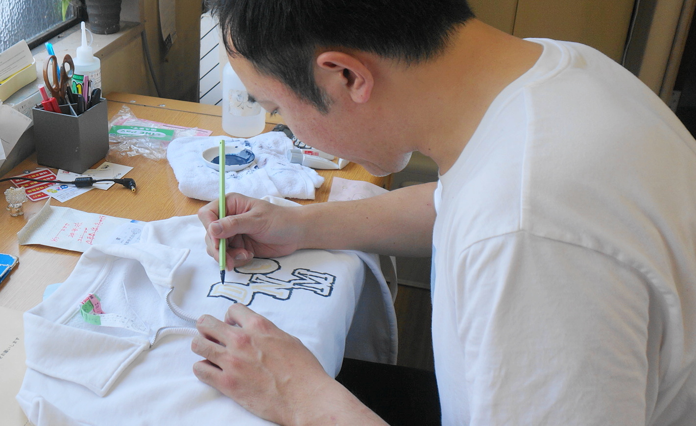 当社のクリーニング師は衣類の色はげ、白化、変色を元に戻すことも可能です。時にはつけ込みで全体染め代えを行ったり、部分染めを行ったりも可能です。高級ダウンになればなるほどデリケートのため、ダウンの変色やダウンの色あせ等が起ってきてしまいます。それを染色することにより蘇らせる事が可能です。時には、高級ダウンをすべてほどいてばらして、部分的に染める事もいたします。この技術は一般のクリーニング店ではむずかしく全国でも数えるくらいしか行えるところはありません。ダウンの染色は、一般の衣類より数倍難しいため、行っていないところがほとんどです。また、ポリエステル素材は染まらないと断られるケースが多々あると思いますが、当社はポリエステル専用の染料を持っておりますので、ポリエステル100%でもポリエステルの混合素材でも染色可能です。高級ダウン、ブランドダウンを当社クリーニング師は、一点ずつ、その素材にあった染色方法で行っていきます。染色はまずしっかり汚れをとってからでないと色が定着していかないので、まずは高級ダウンクリーニングをしっかり出来るお店でないと始まりません。それからがようやく染色のSTARTとなるため、STARTの地点に立つまでも大変です。尚且つ、染色した後は、しわしわになったダウンをアイロンで伸ばす大変大変難しい行程があります。一般の家庭、クリーニング店ではまず難しいといって良いと思います。高級ダウン、ブランドダウンクリーニングになれていて、尚且つ染色のぎじゅつがあり、尚且つしわしわになったダウンを特殊アイロン技術で伸ばす事が出来るお店でないと難しいのです。そのため、一般のクリーニング店やチェーン店では敬遠されてしまいます。当社は数ある高級ダウンクリーニング、高級ブランドダウンクリーニング、大切なダウンのクリーニングを数え切れないくらい行って、尚且つ染色してきております。勿論、途中で失敗もありました。苦い思いもいっぱいしました。今でも大変ですが、そういった大きなプレッシャーと戦いながら今の技術を習得しておきておりますので、自信をもってダウンクリーニング、ダウンの染色を行っております。