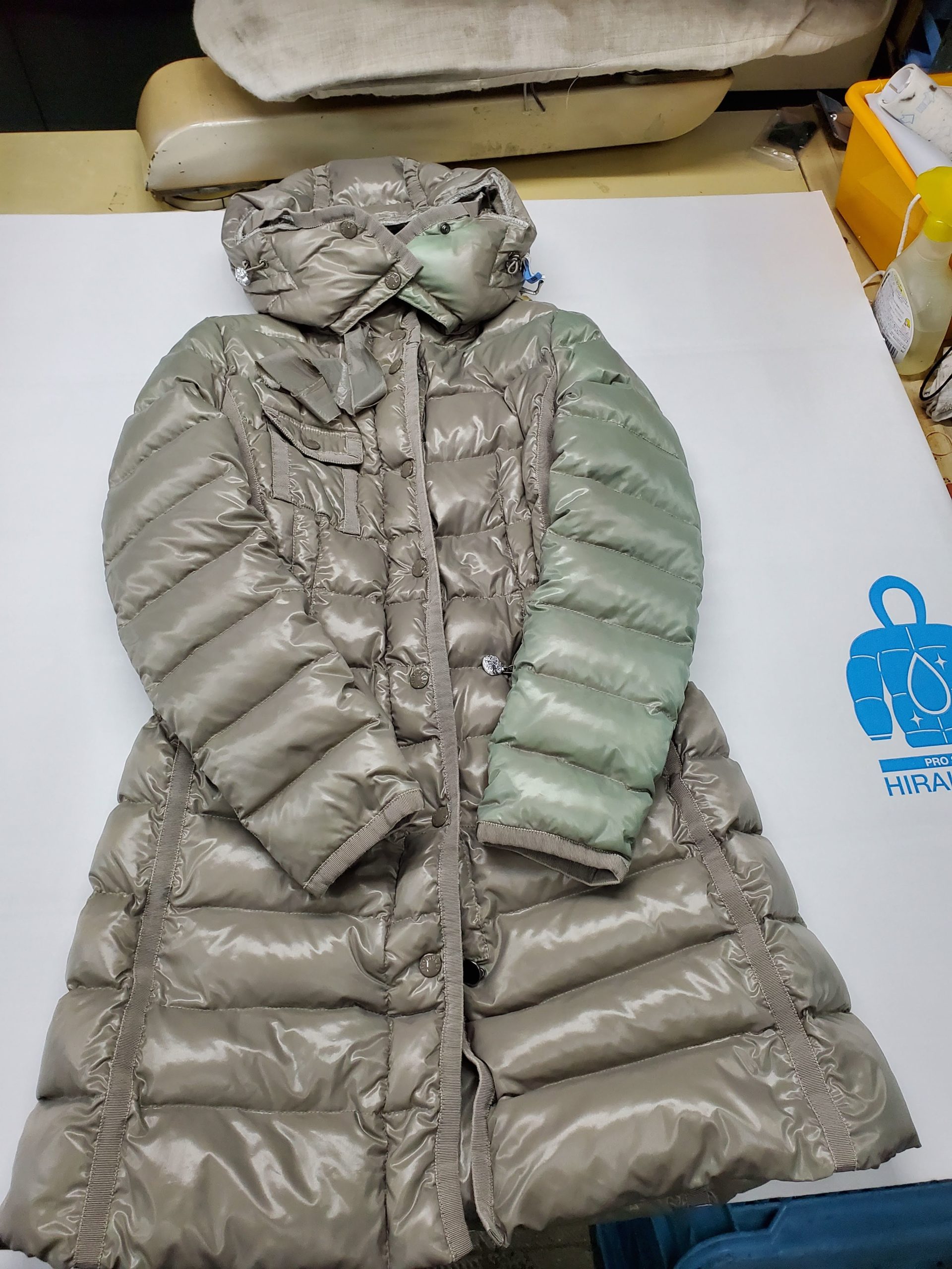 9-3.薄いブロンのモンクレールが左そでを中心に色褪せてしまった事例