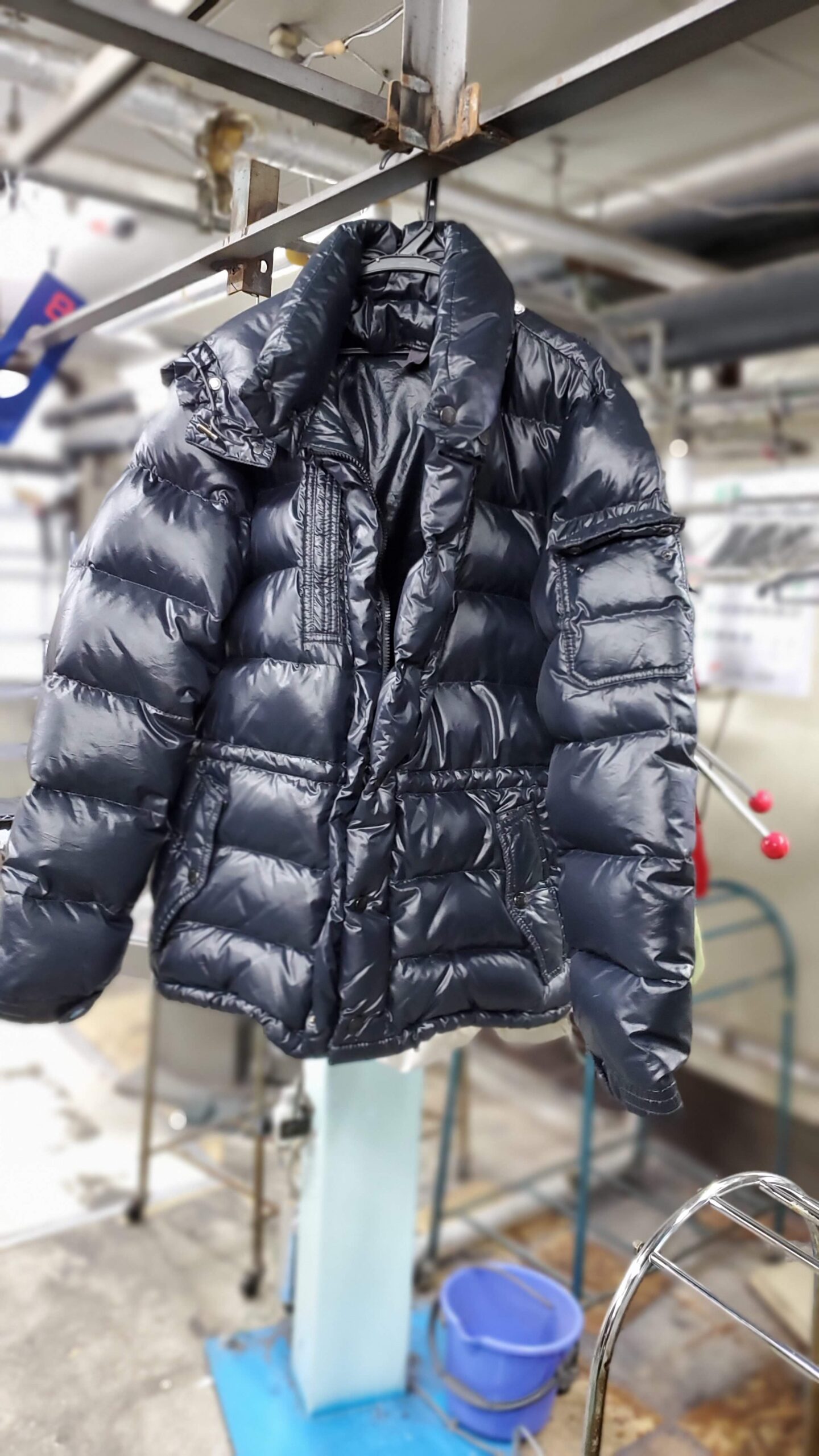 高級ダウンクリーニング・ブランドダウンクリーニングでのウール(毛)素材は1番というくらい気をつけなくてはなりません。こちら高級ダウン、ブランドダウンは、水で洗うと風合いが劣化してしまったりするので、まず家庭での洗いはオススメしておりません。ご家庭で高級ダウン・ブランドダウンを洗ってしまうと、高級ダウン・ブランドダウンの生地を傷めたり、風合いが変化してしまい元に戻せないといったことが十分に起こりえます。PROSHOPHIRAISHIYAでも細心の注意を払わないと大変なことになるのがわかっていますので、何十年と経験したベテランがきをつけて行っているレベルです。そのため、高級ダウン、ブランドダウンのクリーニングにはご注意です。PROSHOPHIRAISHIYAの高級ダウンでのウール素材扱い方法については、基本ウェットクリーニングをしております。これは水を使って汗や汚れをしっかり落とせるとても良い物ですが、先にも書きましたが、ウール素材のダウンは水と相性がよくありませんので、手洗いで慎重に行わないと風合いが劣化してしまいます。こういった事もありますので、特にウール素材のダウンは気をつけないといけません。特に多いブランドはモンクレールのモンジュネーブルが代表でしょうか。こちらはフランスのリゾートの名前をそのまま付けた物でモンクレールの中でもかなり高級な部類に入りダウンです。その他に、タトラスダウンもデュベティカもカナダグースもあります。そういったすべての高級ダウンクリーニングに対しては細心の注意が必要です。そういった中で、当店ではウール素材に関しては完全ウェット手洗いするので、料金も割高になります。特に難しい高級ダウンのウール素材をウェットクリーニングするにはとてもリスクがいります。しかし、PROSHOP HIRAISHIYAでなぜそれをおってまでその洗い方をするかというと、汚れ落ちがいいのとダウンのボリュームが復活するからです。これは本来の高級ダウンに入っている羽毛が水との相性がよく、その水で洗って上げる事によって中の羽毛が汚れが取れるだけで無く、本来のボリュームを蘇らせることができるからあえて、リスクをおかしてまで高級ダウン・ブランドダウンのウール素材をウェットクリーニングしているのです。PROSHOP HIRAISHIYAの見解ですが、世の中に高級ダウンクリーニングをウェットクリーニングしているところも少ない中で、さらに高級ダウンのウール素材をウェットクリーニングしているところは日本の中でも数えら得れるくらいしかないと思っています。それくらい知識と経験がないと出来ません。しかし、PROSHOP HIRAISHIYAでは、いままでの経験があるので、失敗せずに、通常のクリーニングよりさらに上のレベルで完成できています。それがPROSHOP HIRAISHIYAでの強みです。