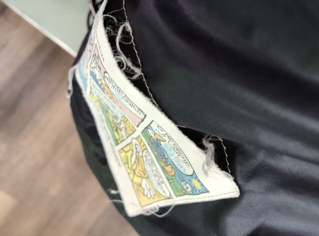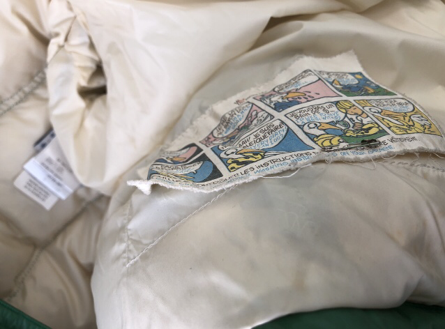 このオプションはモンクレールダウンの内側につけられている「アニメラベル」の補修を行うものになります。もともと頑丈に取り付けられているわけではなく、一本の糸で縫われているだけなのでほつれてしまった場合、簡単に外れてしまうものです。また、仮に縫い目は残っていたとしてもラベル本体がほつれてしまう事もあります。こういった状態のアニメラベルを一つ一つ縫製していきます。