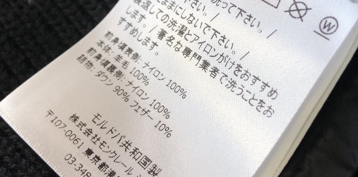 衣類表示には「ナイロン」や「綿」など、使われている素材が明記されています。その中で気になるのが「ウール」と「毛」の表記。いずれも「毛」素材であることを示しているという事はわかりますね。