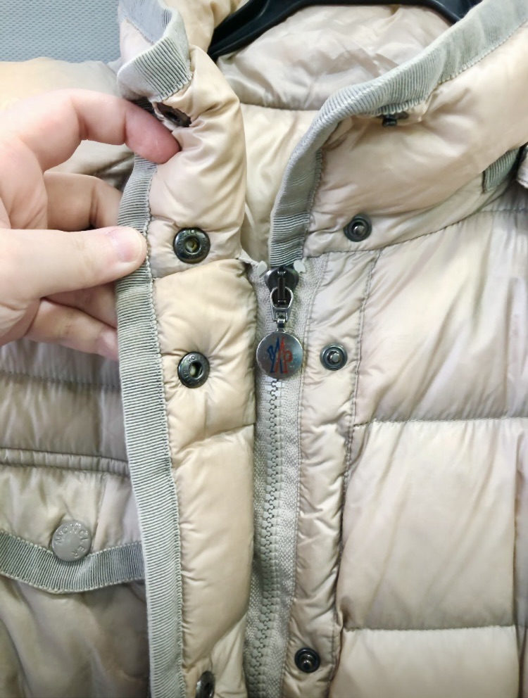 モンクレールなどのナイロン製のダウンに多く見られる変色は紫外線や汚れの影響を多く受けている物だと考えられます。というのもナイロンは熱に弱く紫外線に当て続けられると徐々に変色し始めてしまうという特徴があります。雪や雨に濡れたダウンを乾かすために長時間日光に当て続けていたり、日の当たりやすい収納にカバーなどをかけずに保管していたりすると紫外線に触れる機会が多くなってしまいます。変色は突然はっきりと色が変わってしまうという事はあまりなく、徐々に変わっていきます。